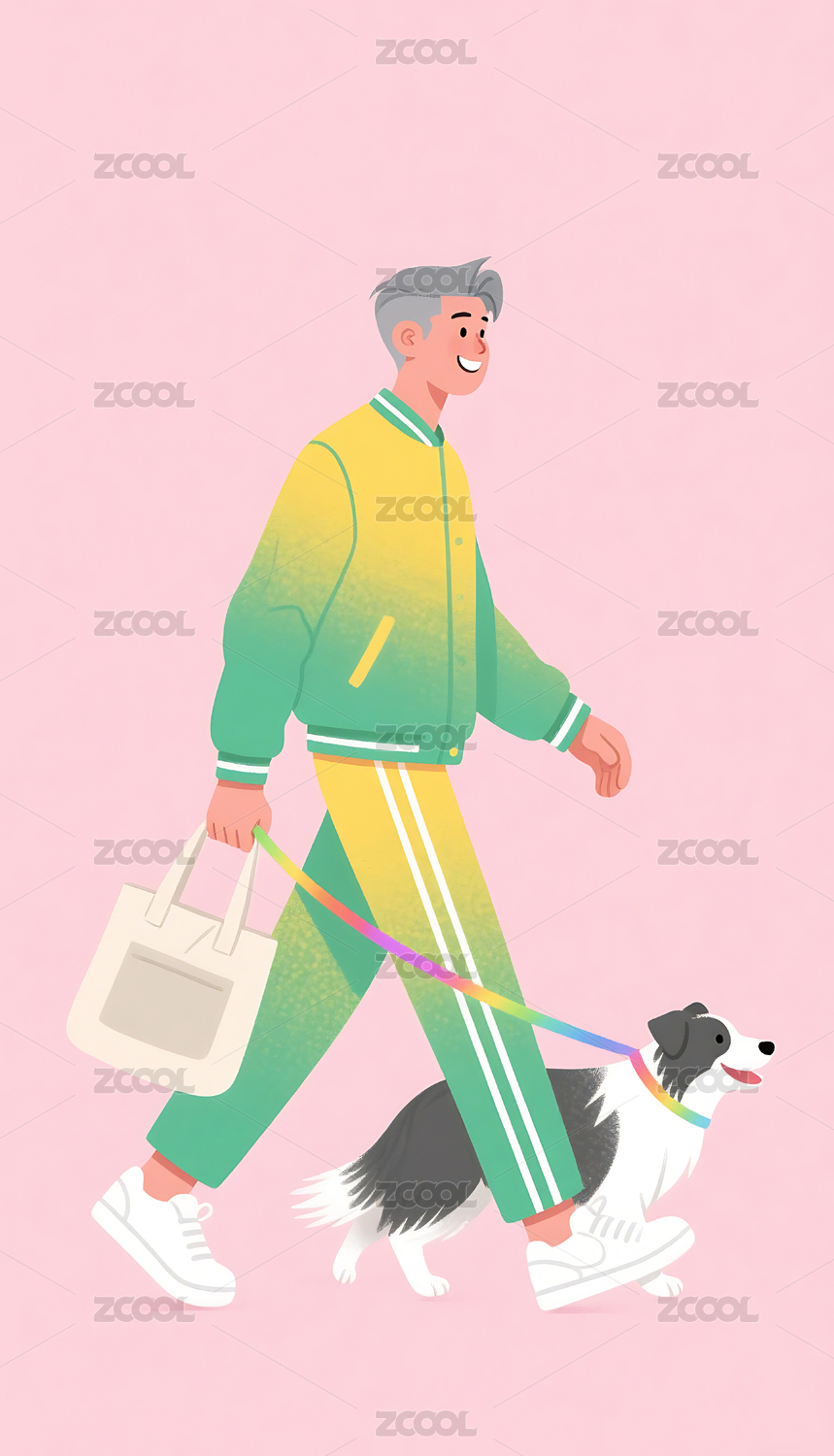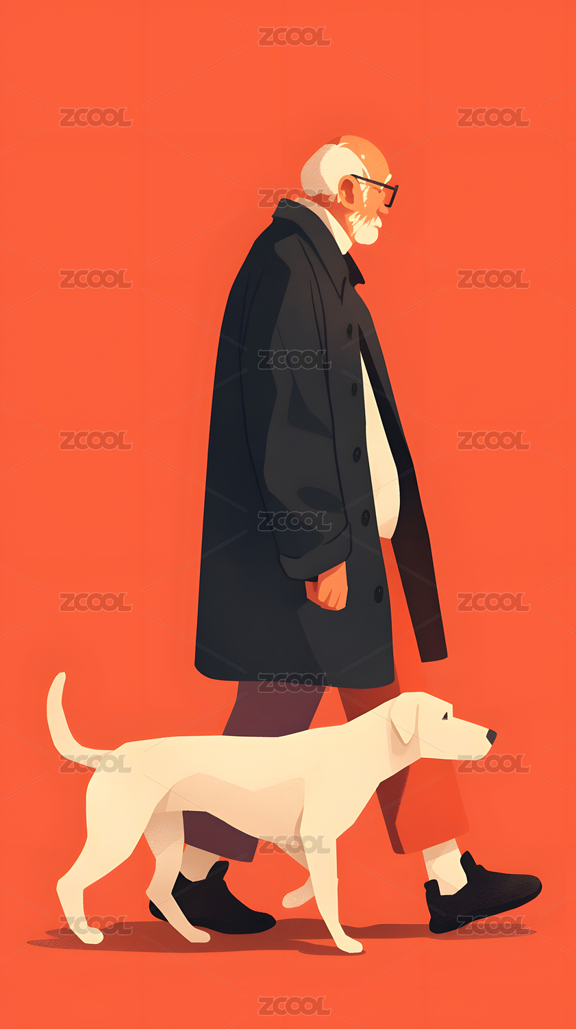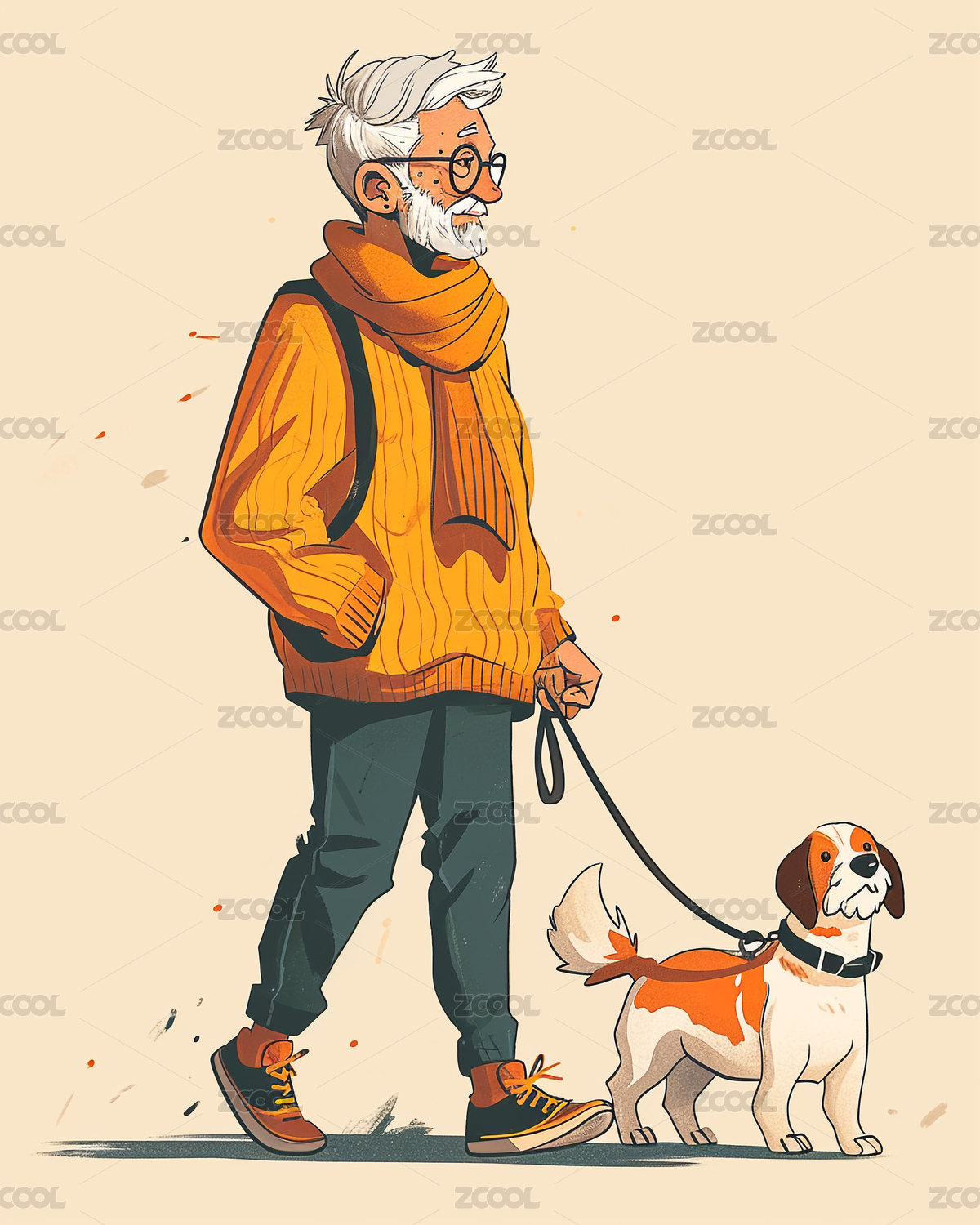 老人遛狗插画
