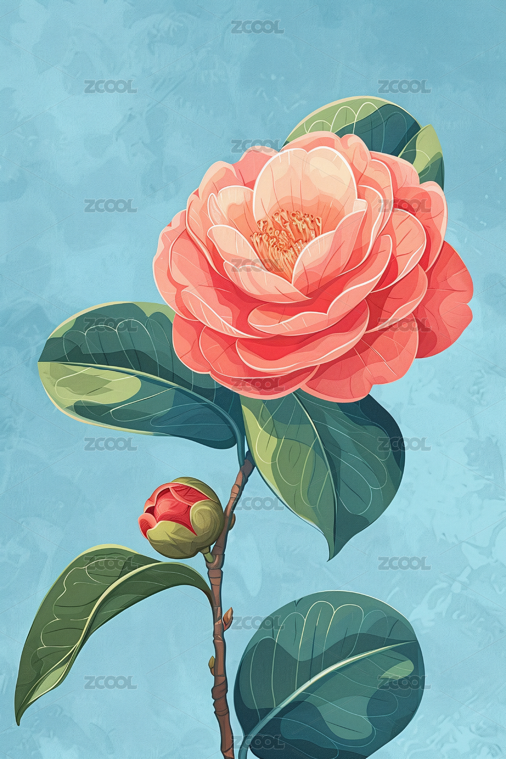 山茶花插画图案