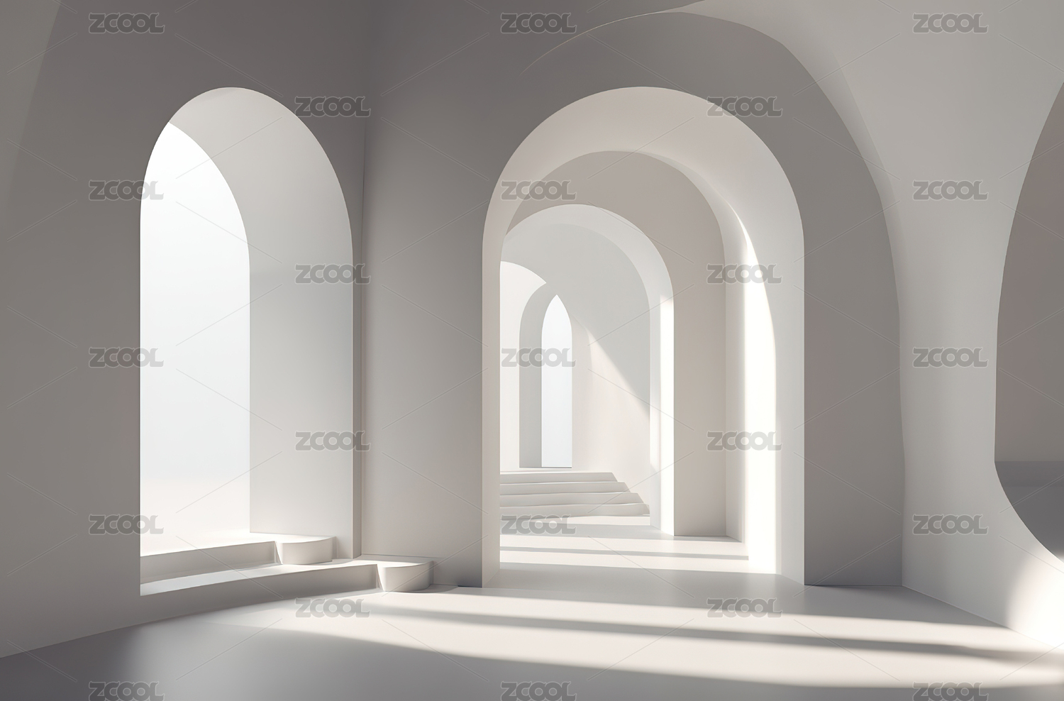 白色拱廊光影空间