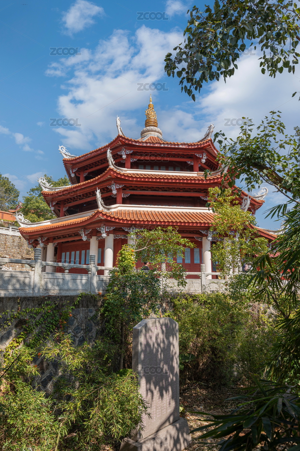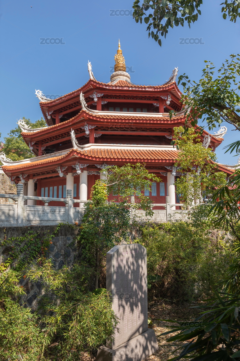 海南三亚南山景区南山寺屋檐石刻牌匾钟鼓楼