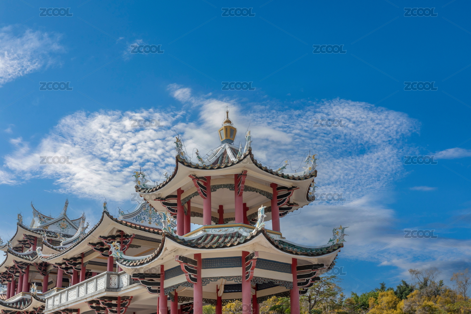 天空,云,蓝天,白云,树林,无人,户外,背景,建筑,古建筑