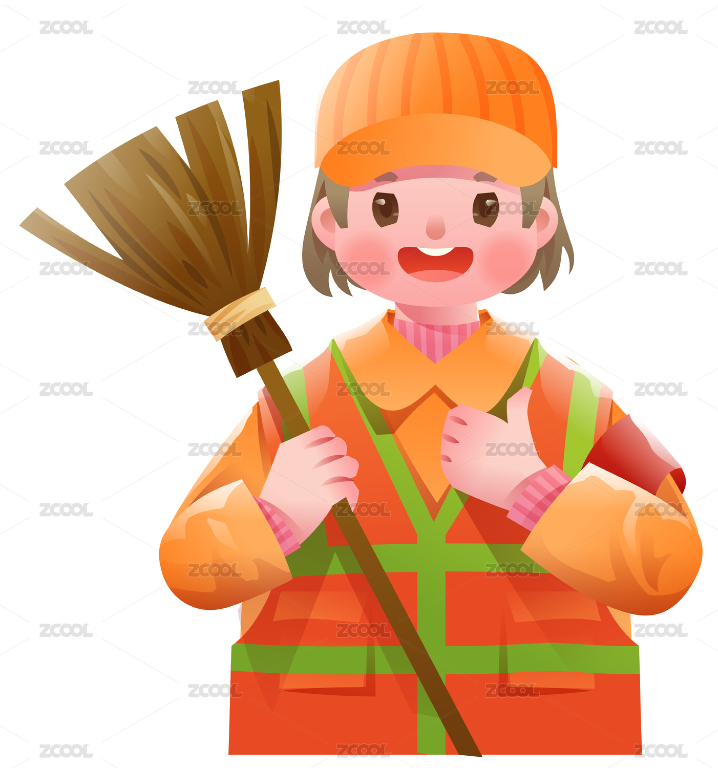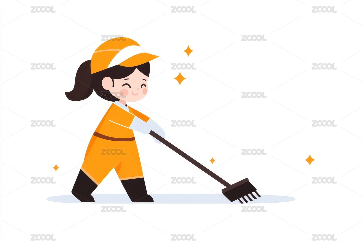 卡通女孩清洁街道