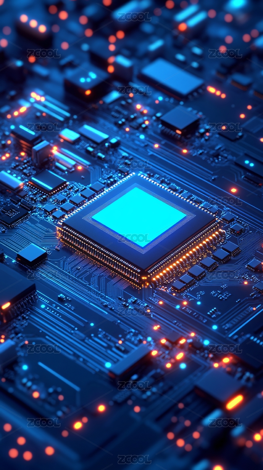 电子电路板电脑芯片蓝色未来技术概念背景