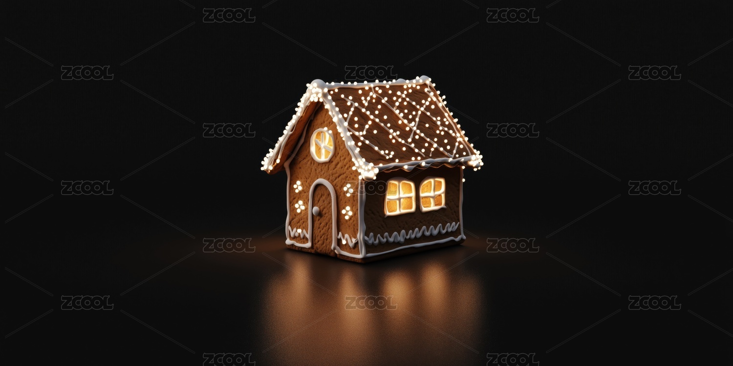 黑底可爱圣诞节尖顶姜饼小屋饼干3D卡通画
