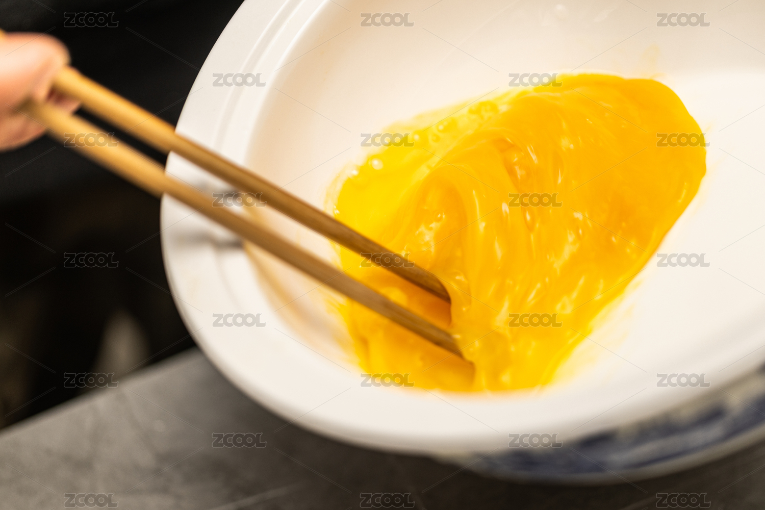 使用木勺打鸡蛋勺盛鸡蛋液特写木桌面背景