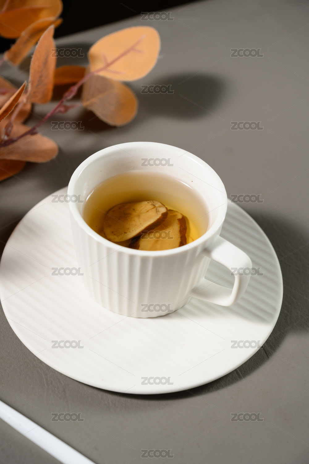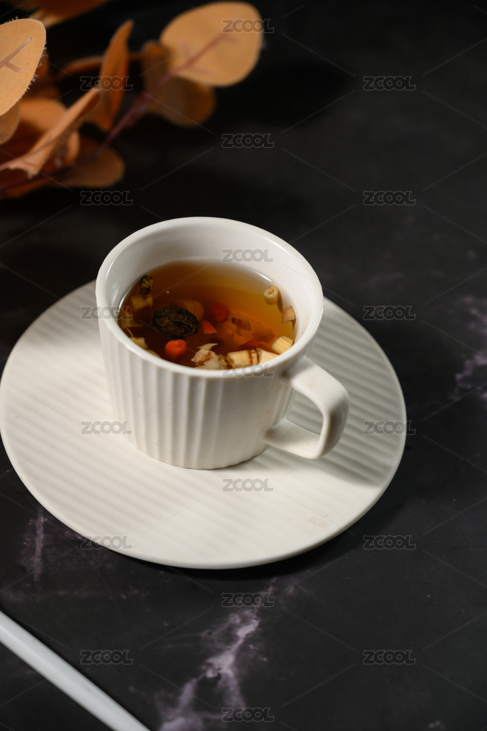 桌面上的杯子里的甘甜可口的胰岛果茶