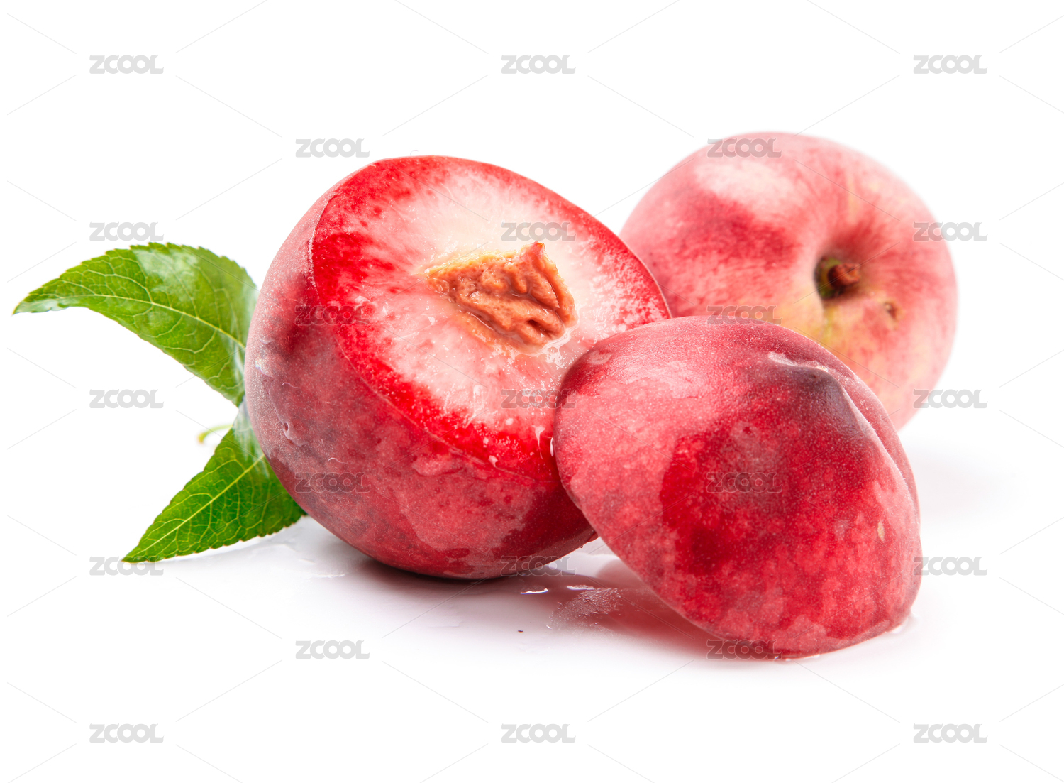 白底上两个完整的水蜜桃前放一个被咬过的水蜜桃