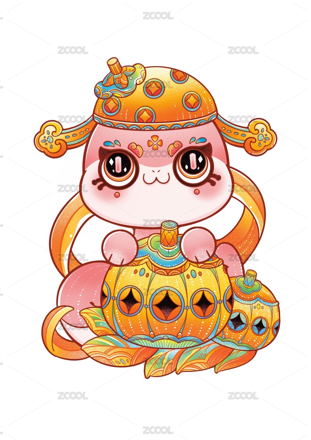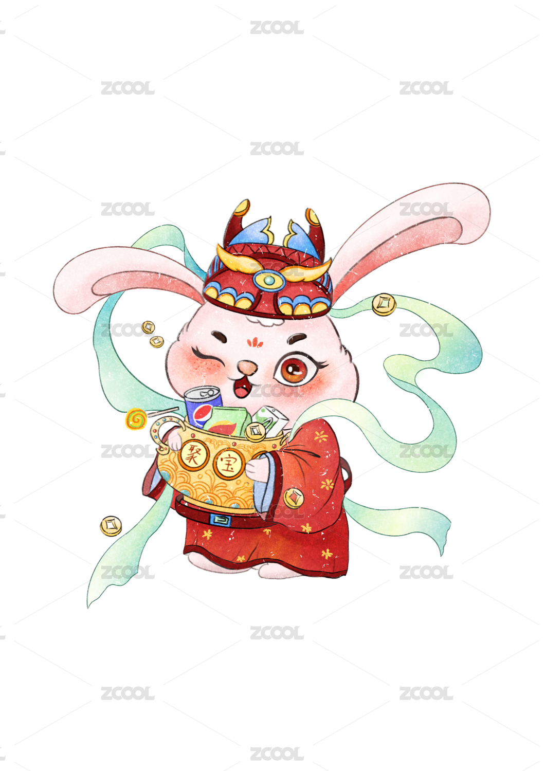 兔年年画元素风调雨顺四大天王兔北方多闻天