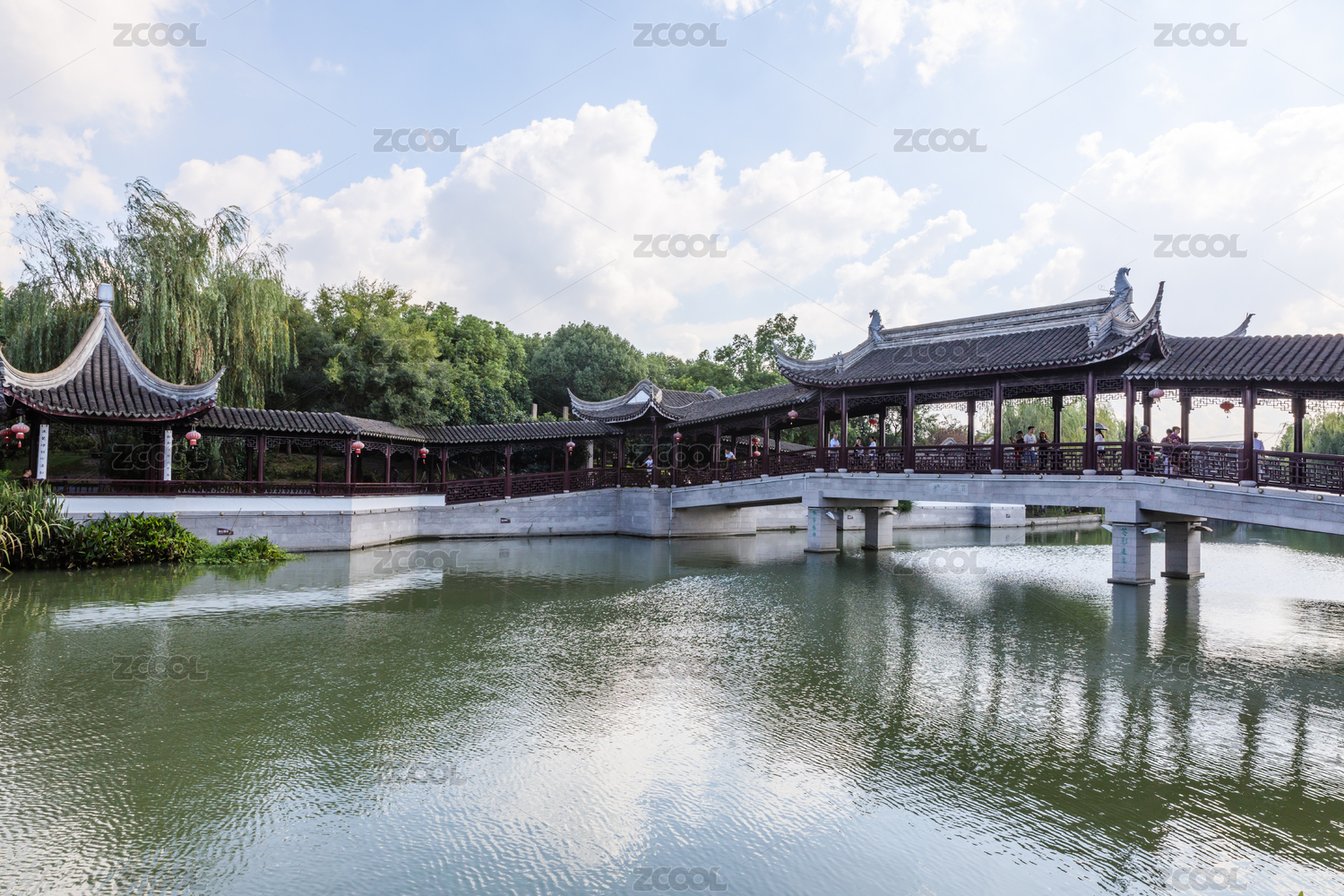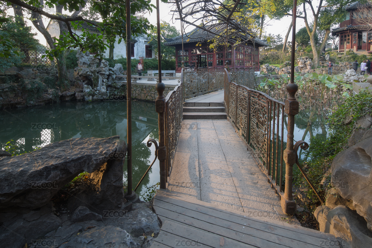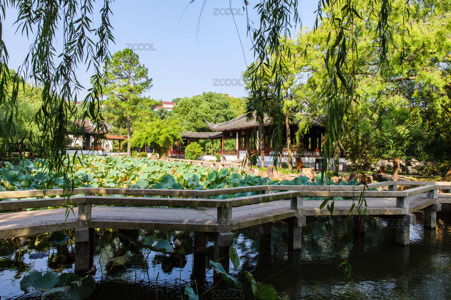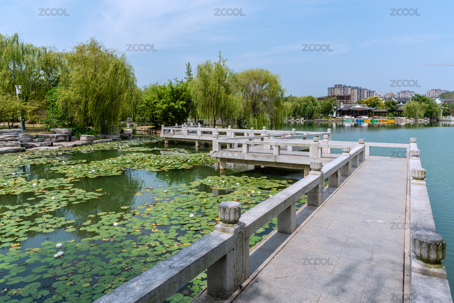 中国安徽宿州灵璧奇石文化园的九曲桥莲花池