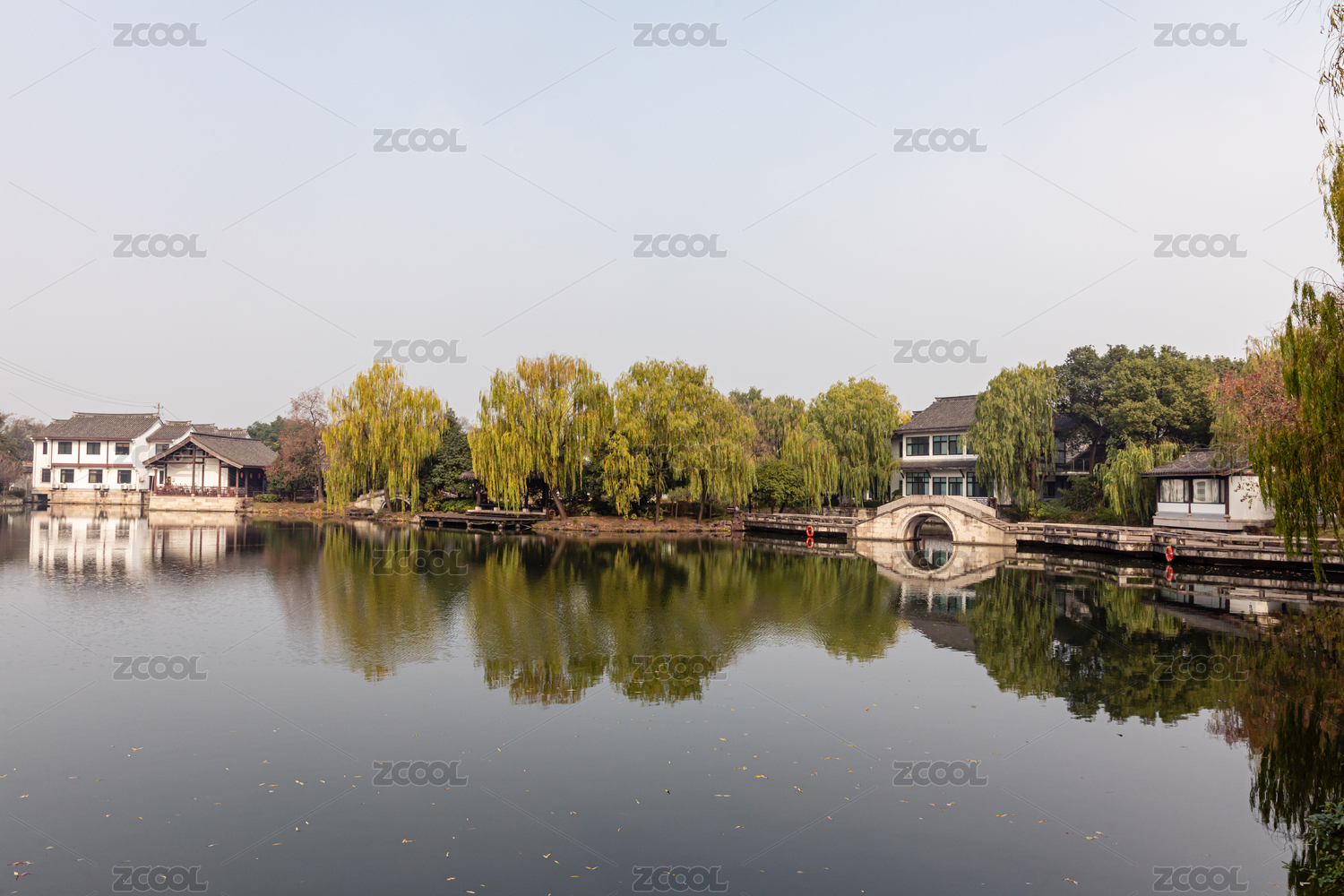 中国太湖的自然风光和江南古建筑