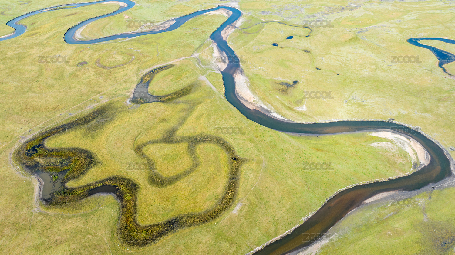 中国内蒙古锡林格勒盟乌拉盖大草原九曲弯