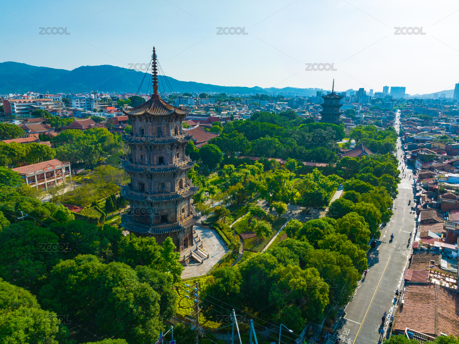 春天中国航拍福建省泉州市鲤城区开元寺双塔