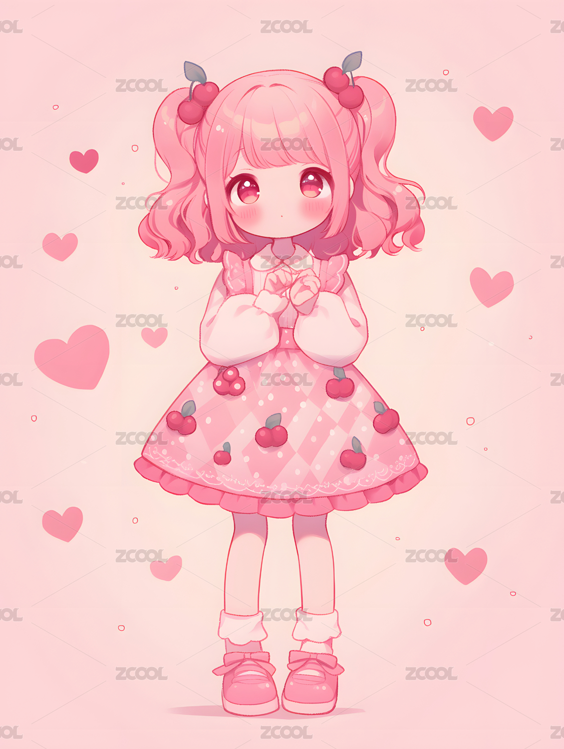 Q版,女孩,吉祥物,ip,形象,人物,设计,卡通,可爱,粉色