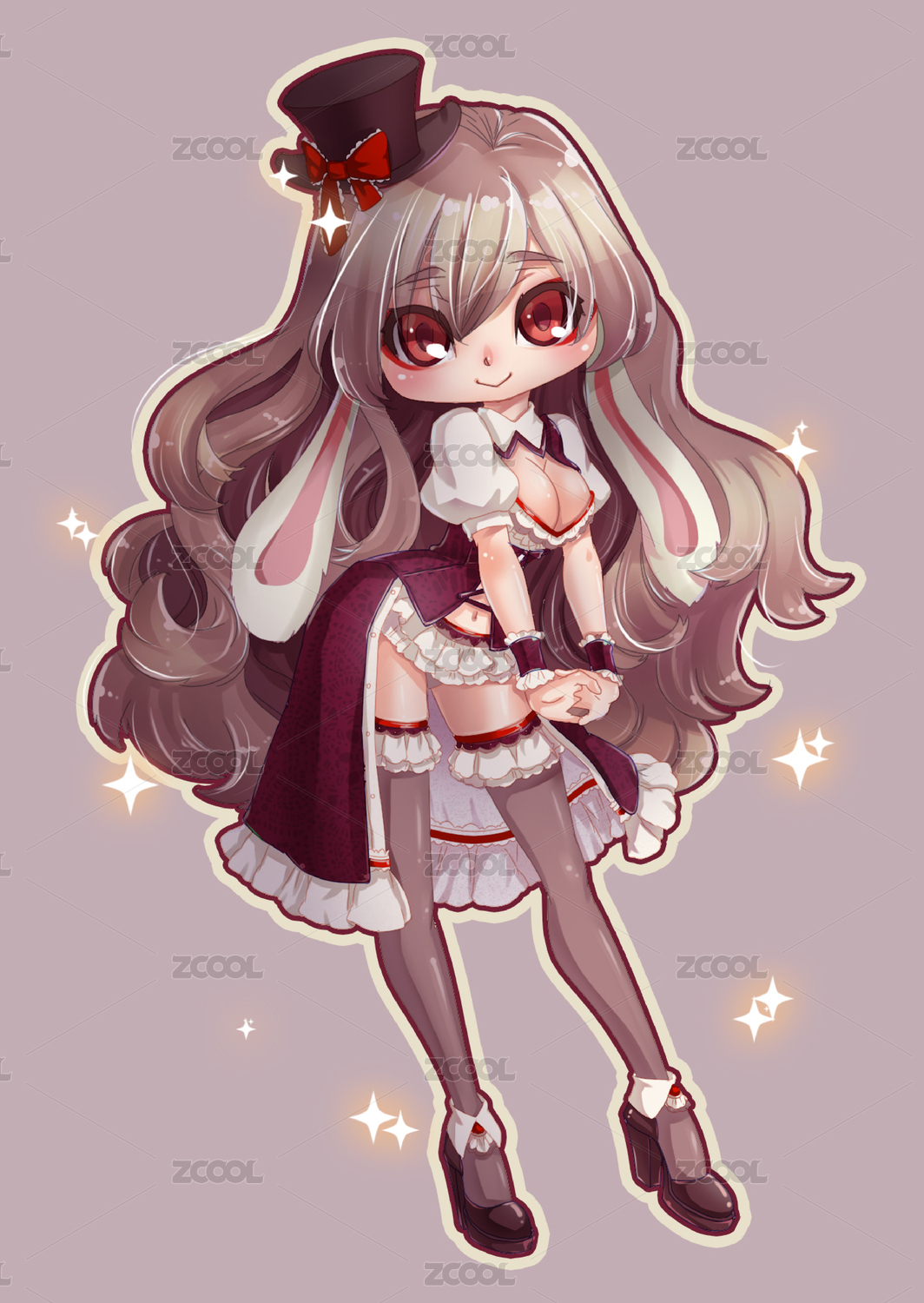 Q版粉色裙子吉祥物ip形象兔子女孩