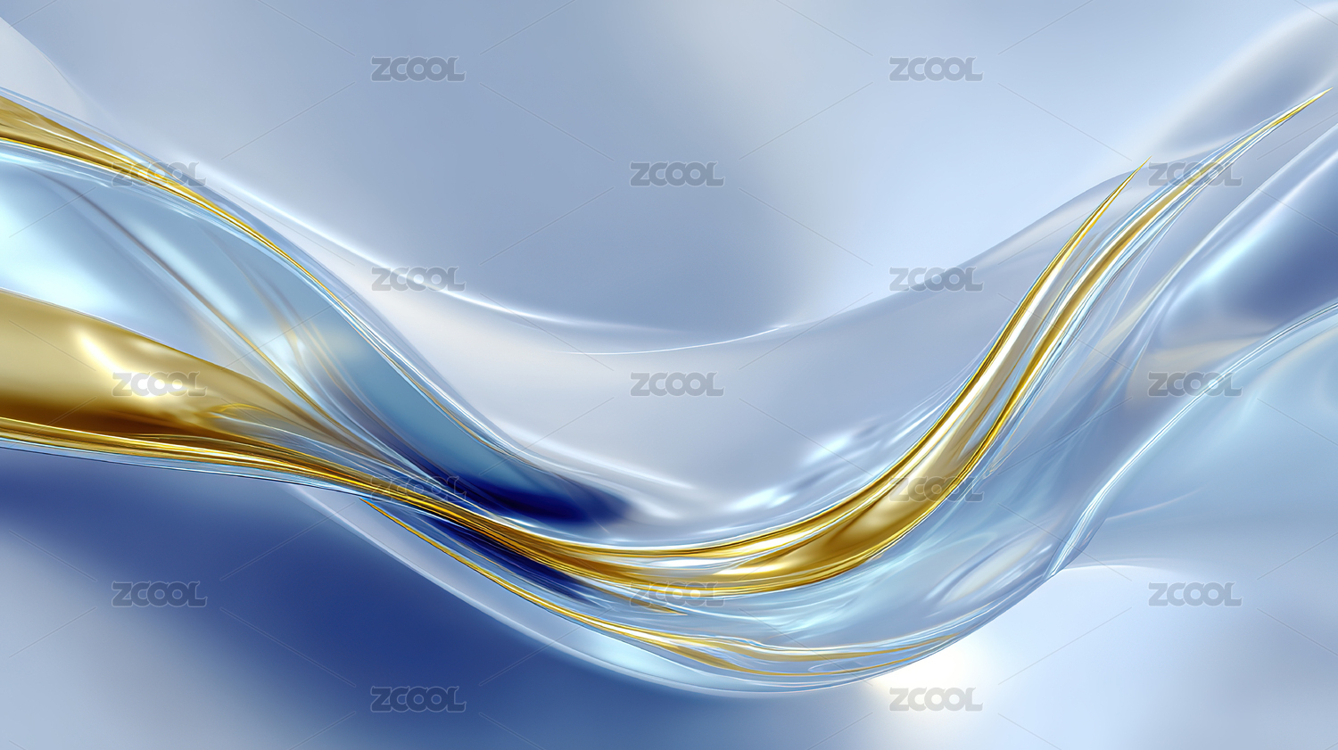 金蓝交织波浪线条深蓝背景