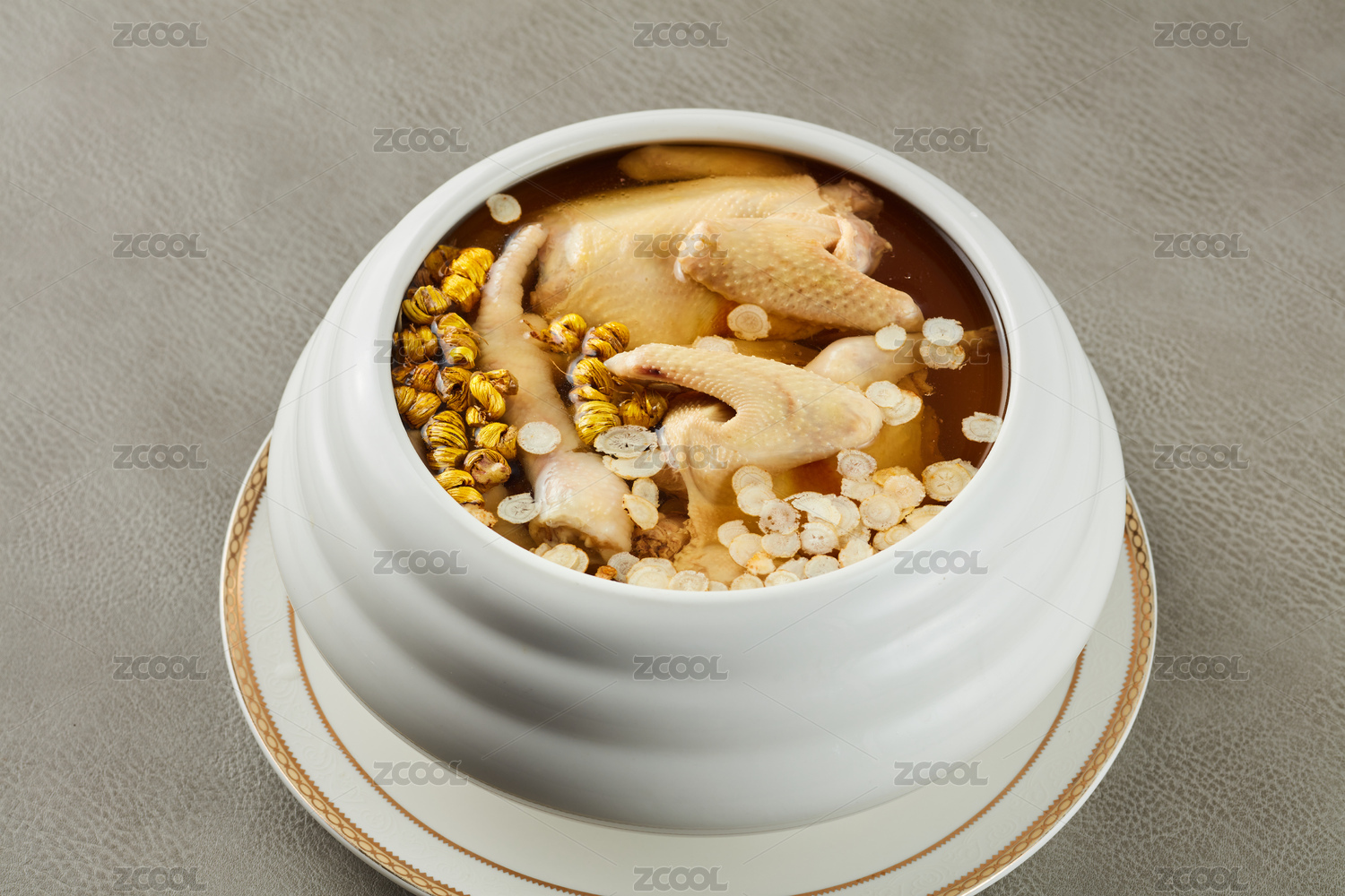 中国粤菜养生汤凤眼果炖鸡汤特写
