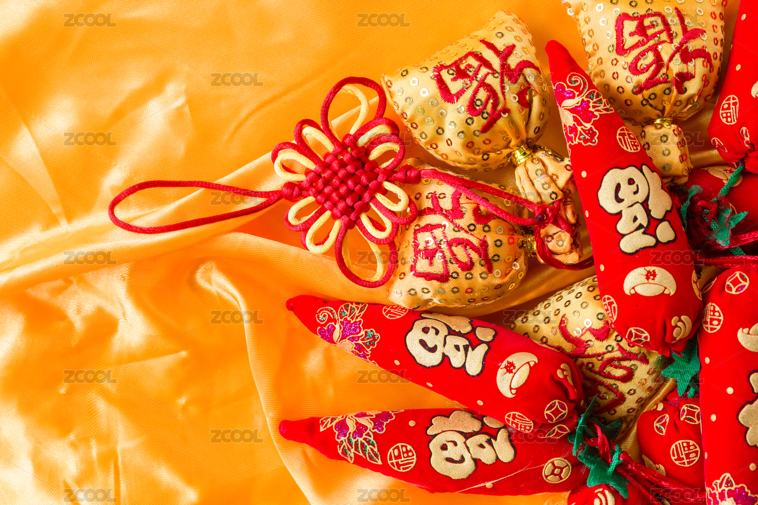贺岁福袋、如意结、中国结、寓意红红火火的辣椒