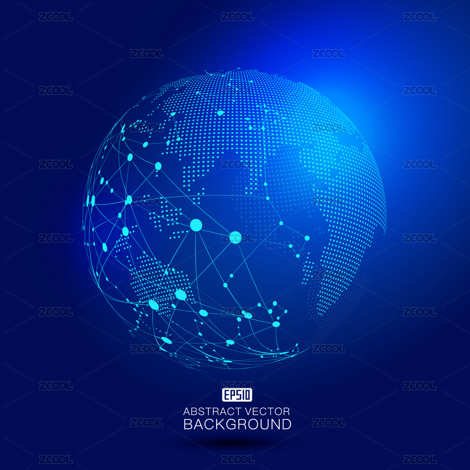 点线链接发光地球矢量抽象背景,蓝色科技背景