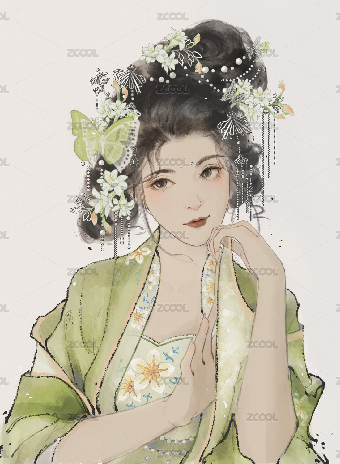 汉服水彩人物插画