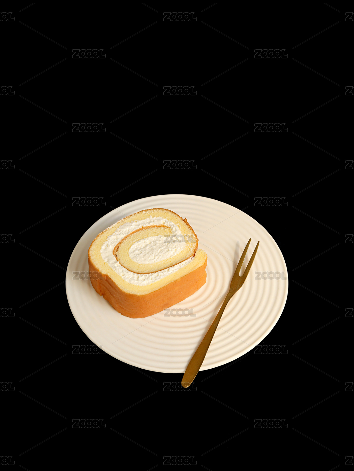 桌面上的盘子里的美味可口的虎皮蛋糕卷
