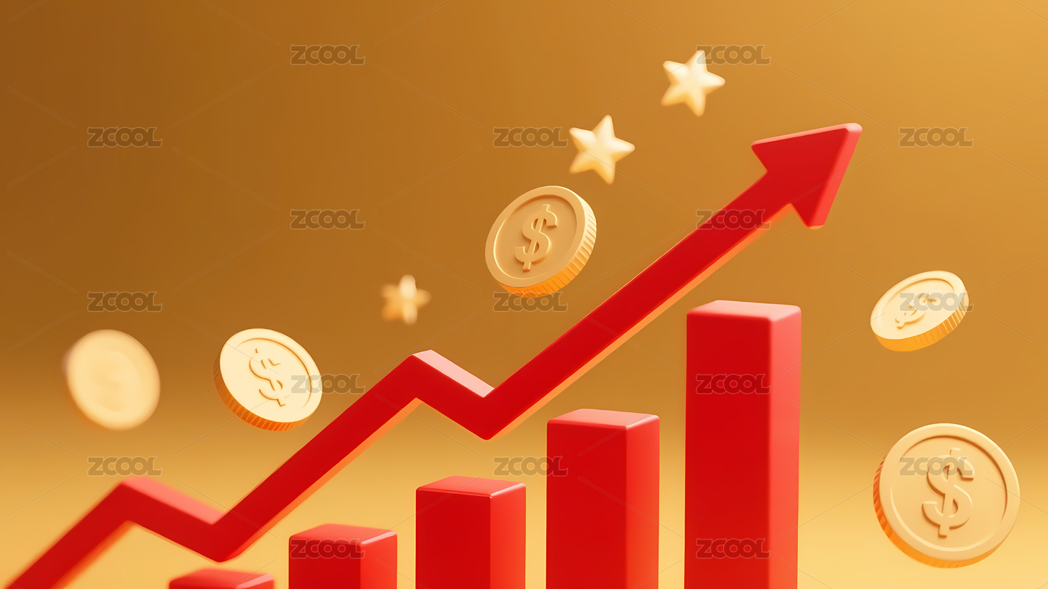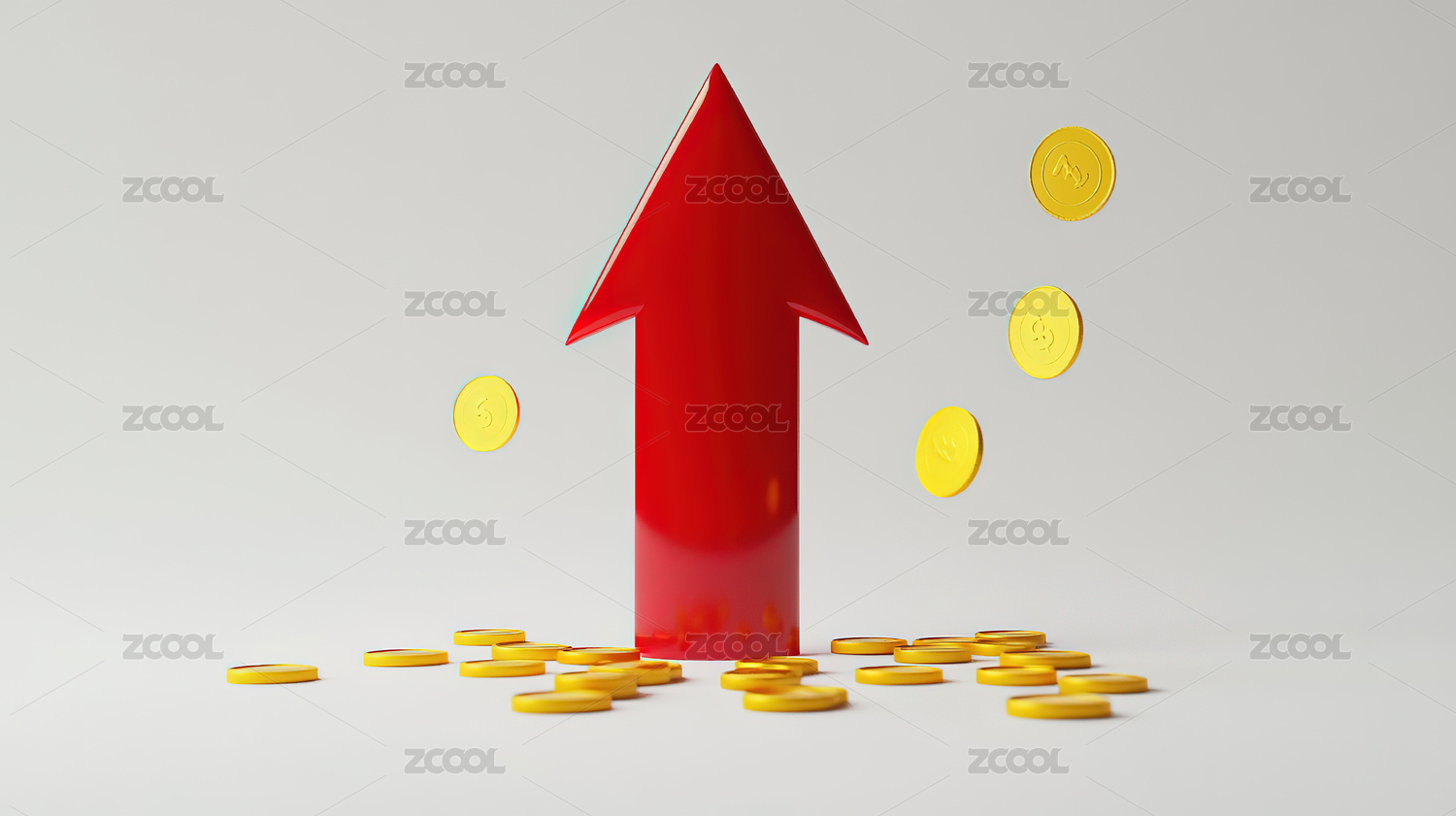 红箭头与金币增长图