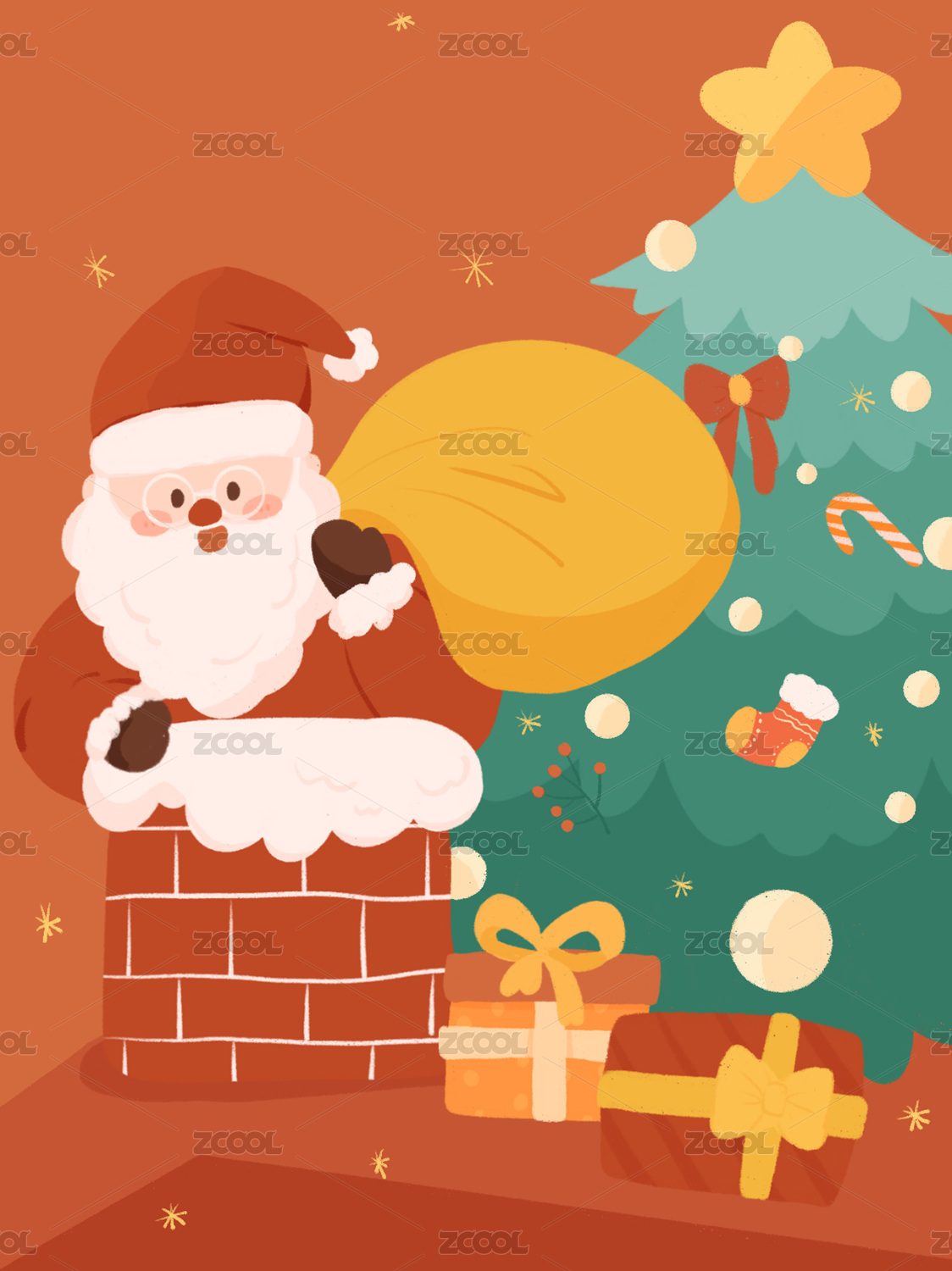 圣诞节快乐海报圣诞老人圣诞树雪人麋鹿