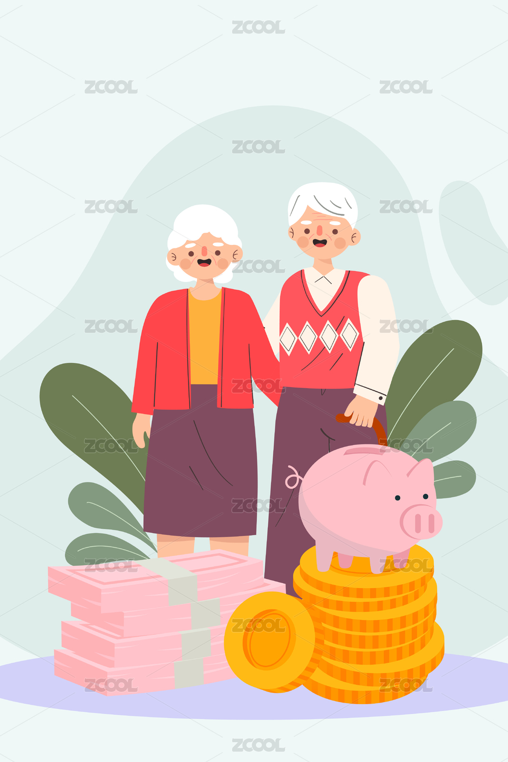 老人健康老年夫妻养老保险亲子游敬老日插画