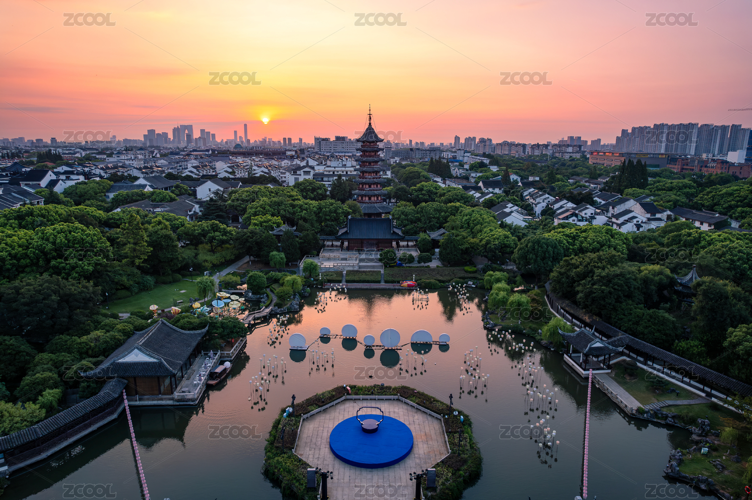 苏州盘门景区日出