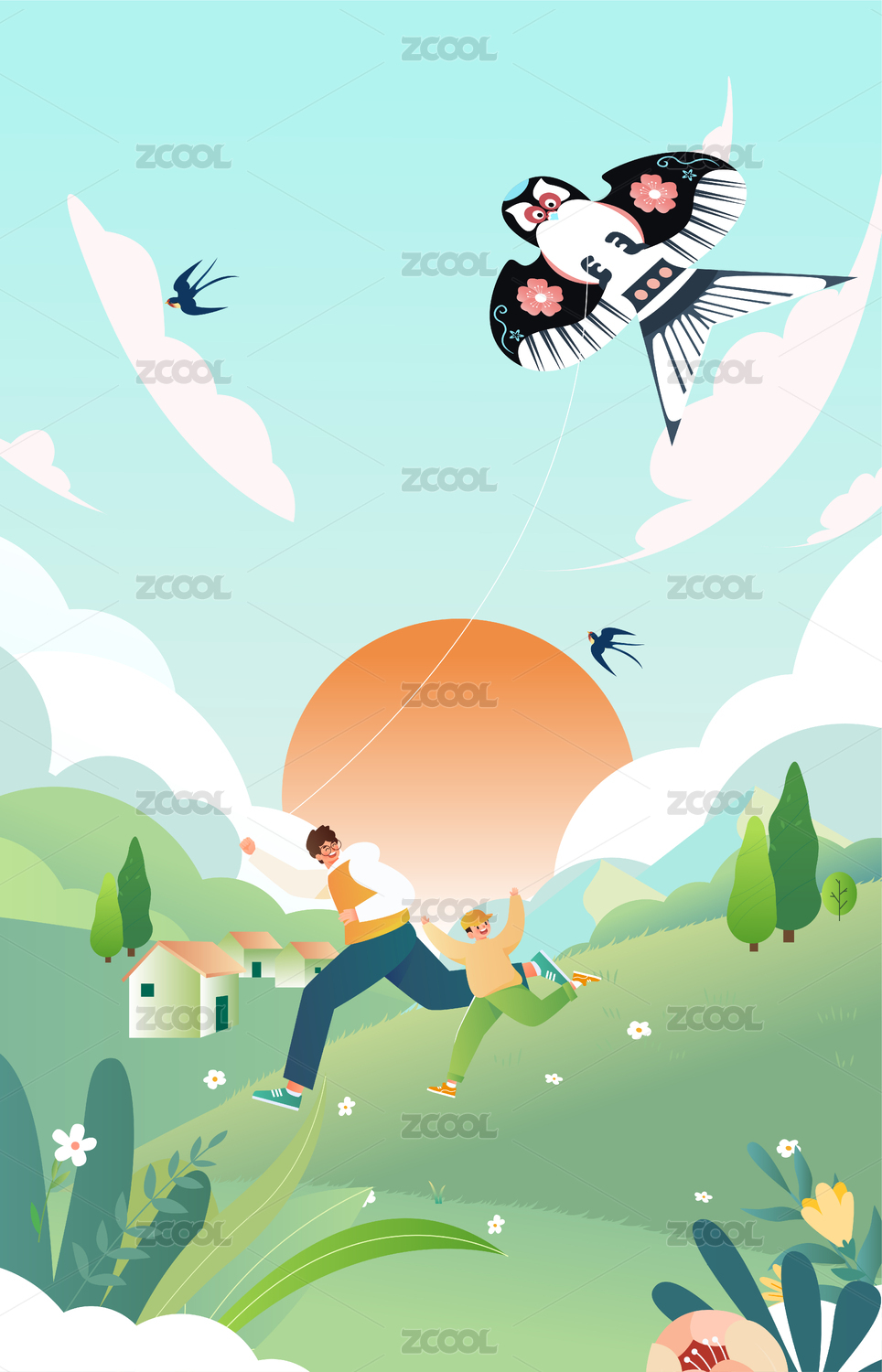鲜花,植物,插画,海报,花,家人,家庭,孩子,幸福,背景