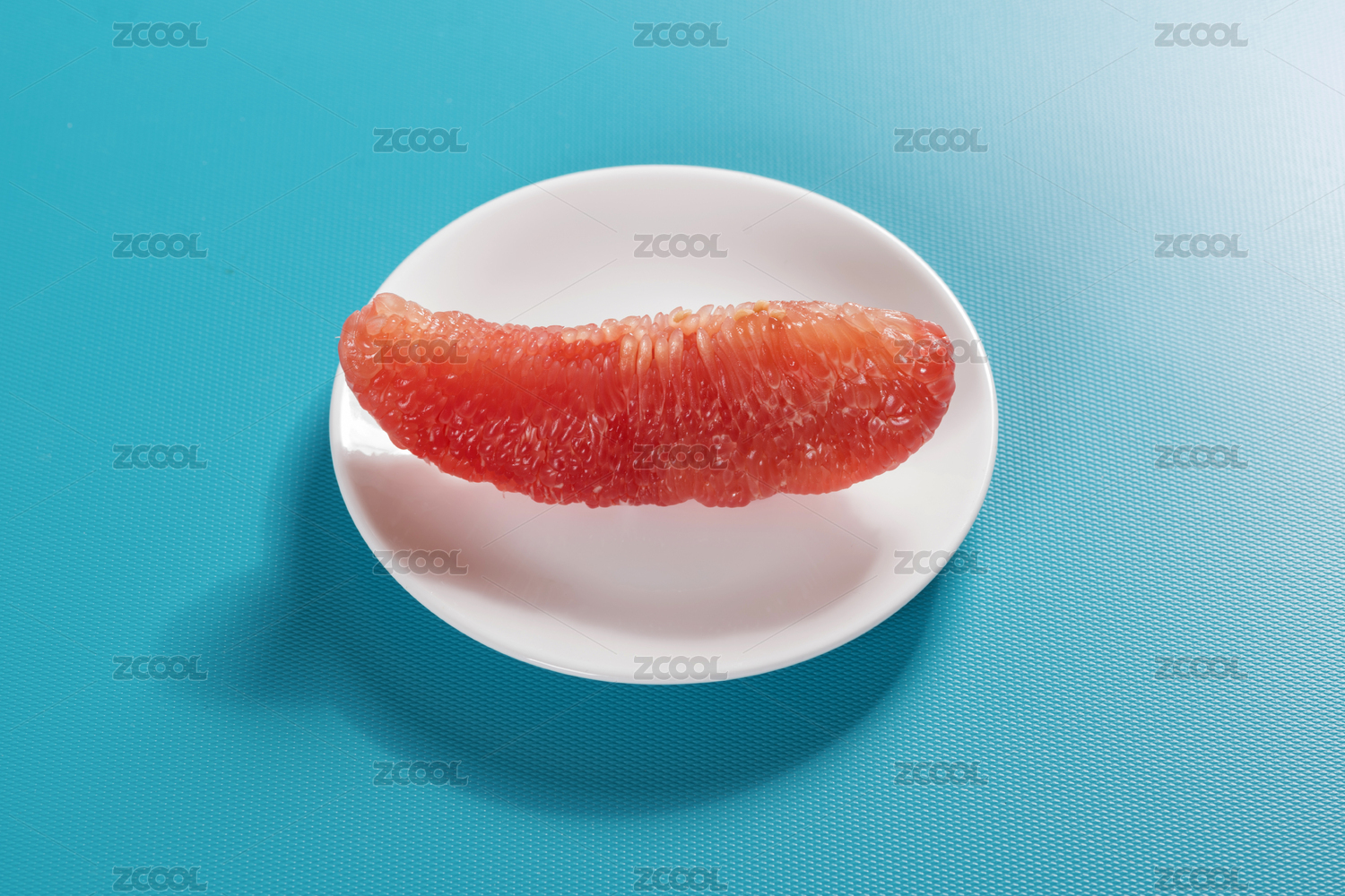 具有保健功能的红心蜜柚摆放在白色盘子中