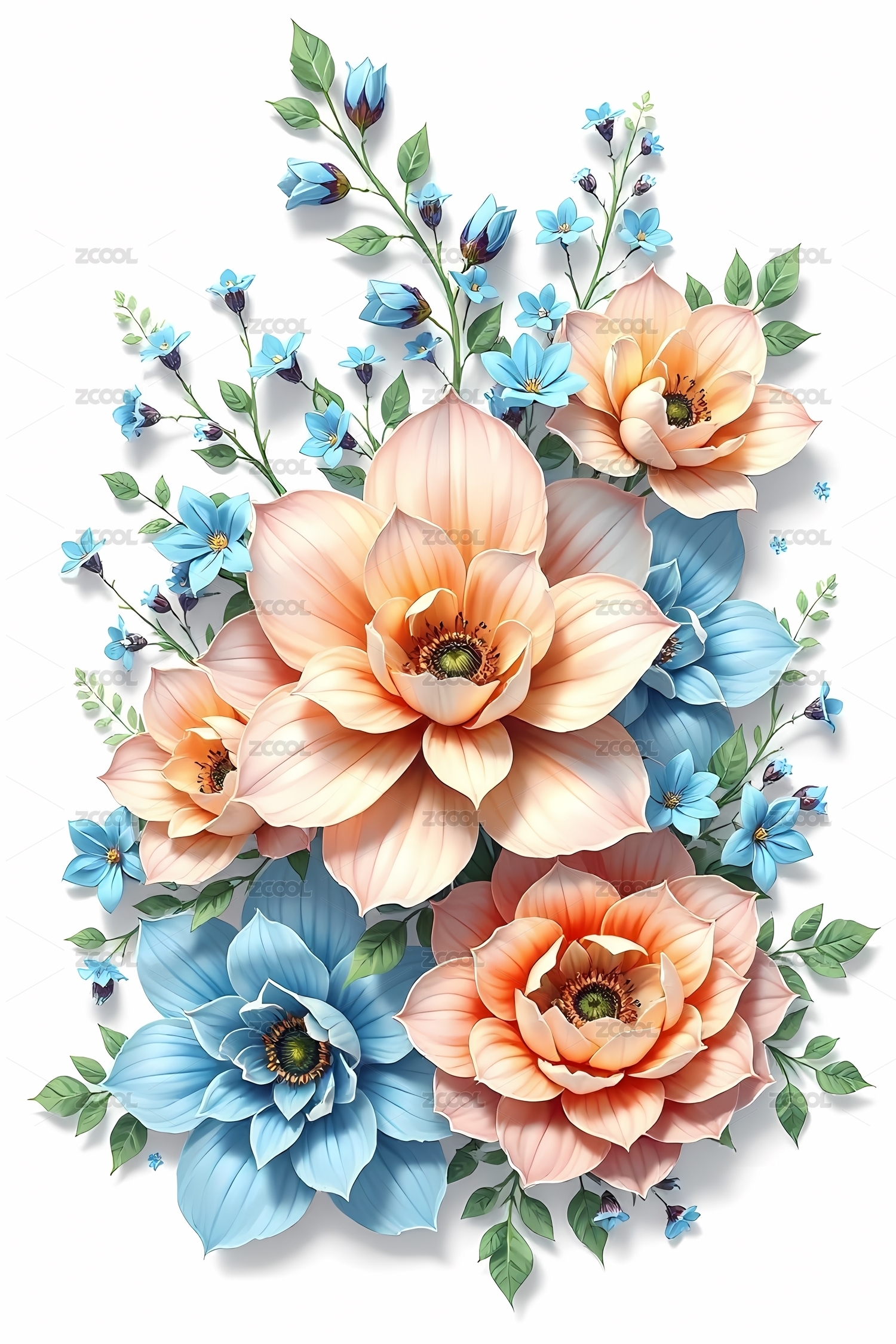 唯美装饰图案自然花卉绿植花束鲜花插画