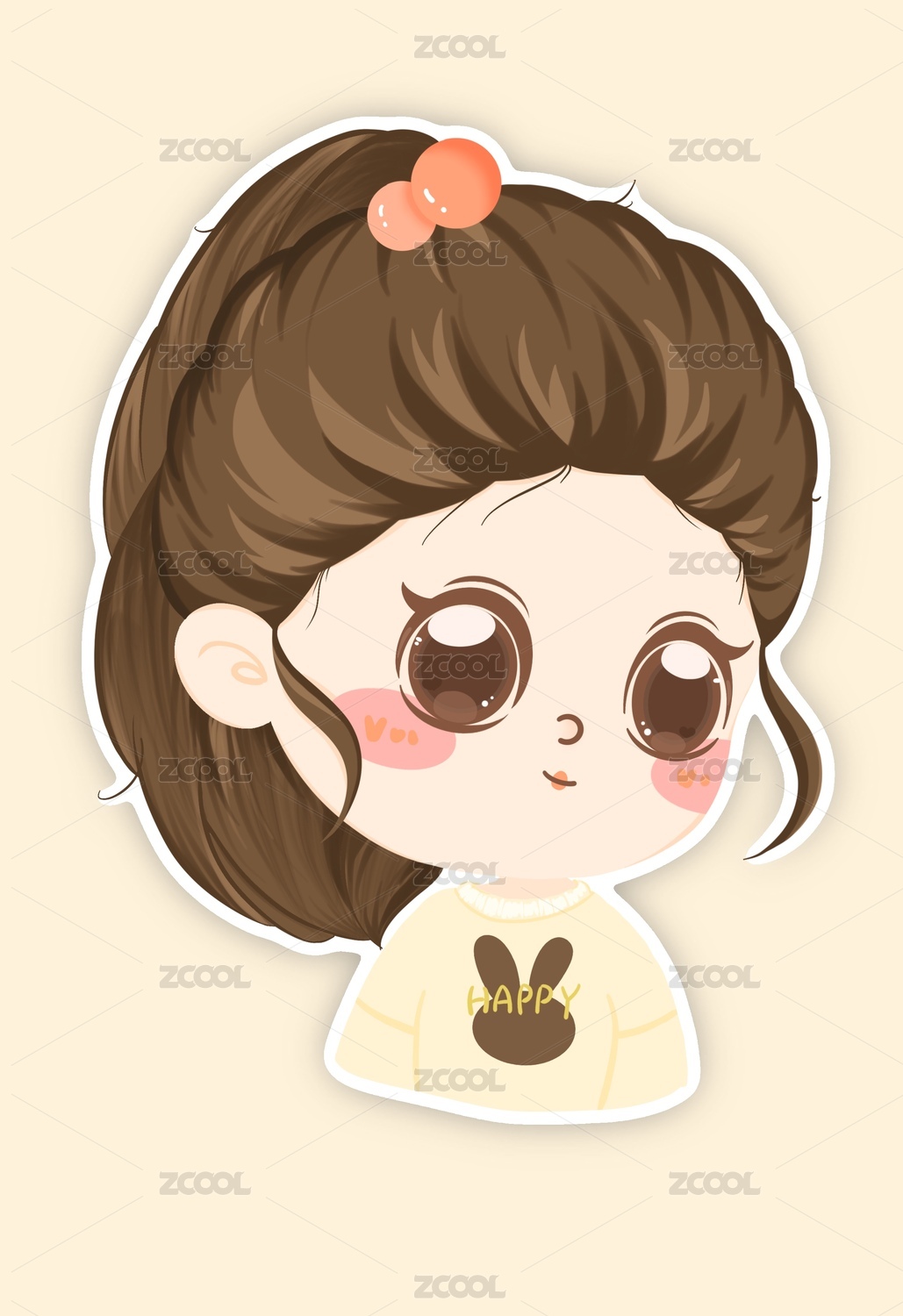 可爱卡通暖色少女头像