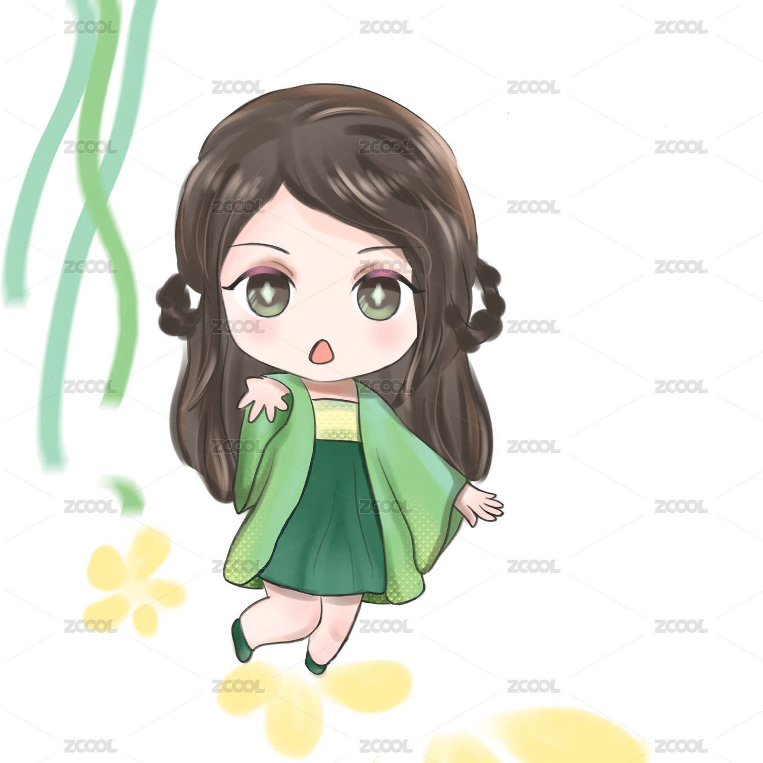 活泼可爱2d女孩平面插画唯美温柔