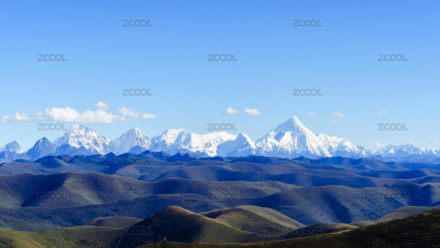 雪山,贡嘎雪山,蓝天,远眺雪山,天际线,连绵起伏的雪山