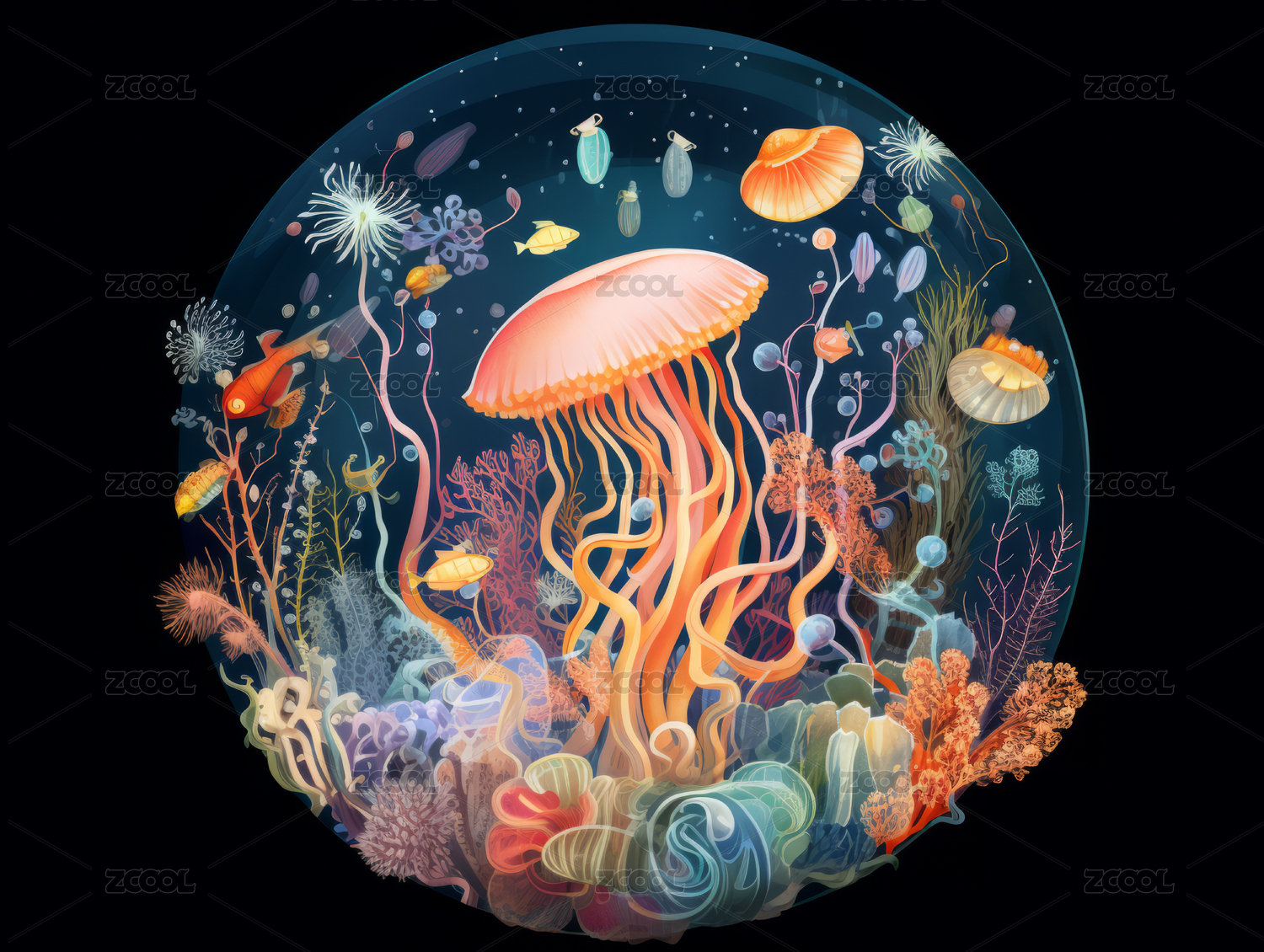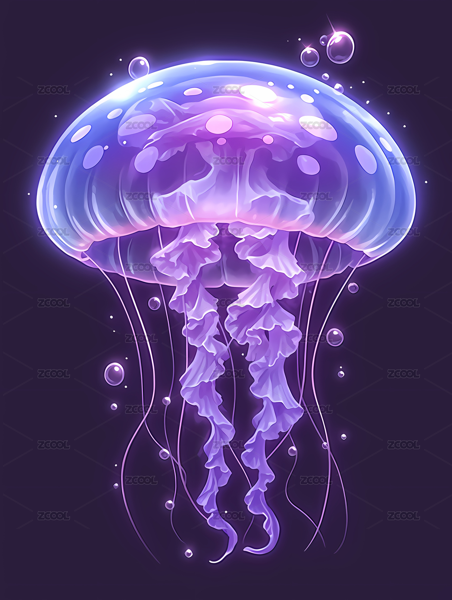 插画风格的发光动物水母