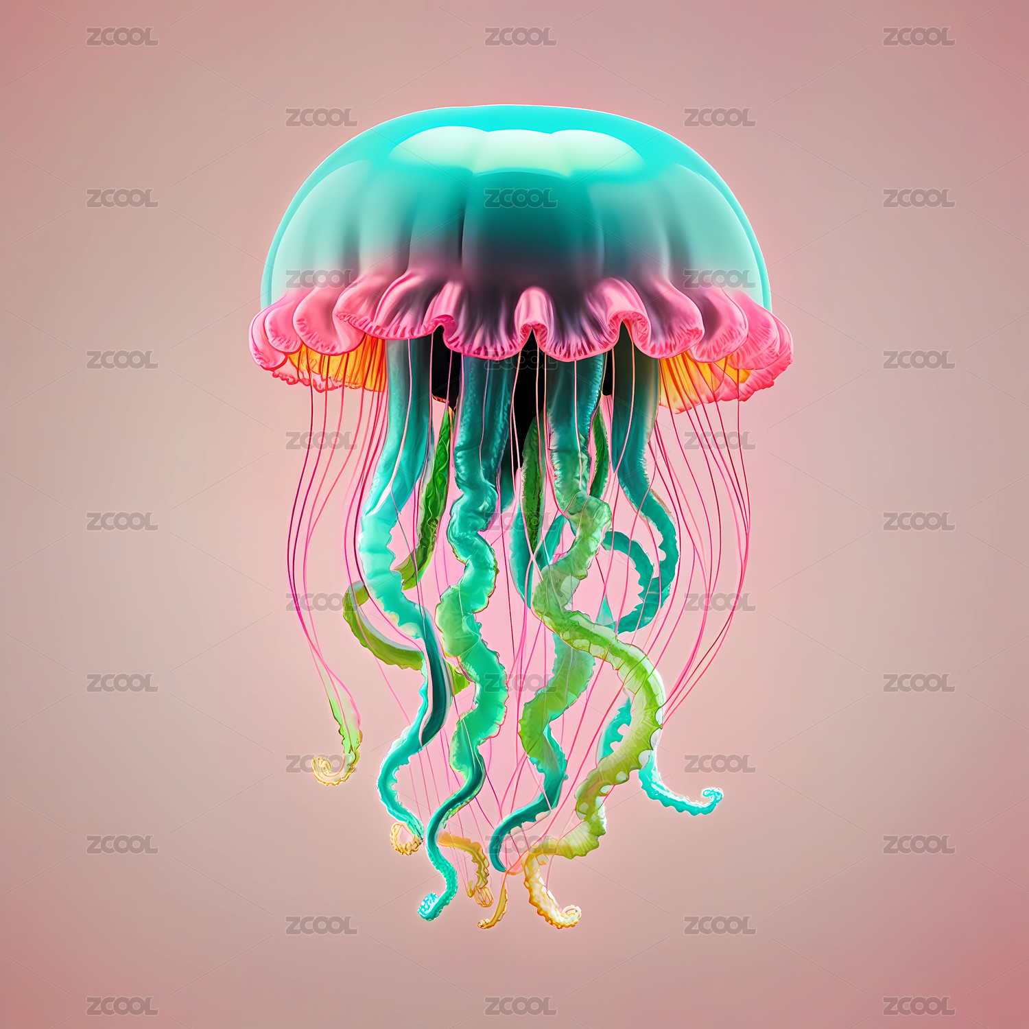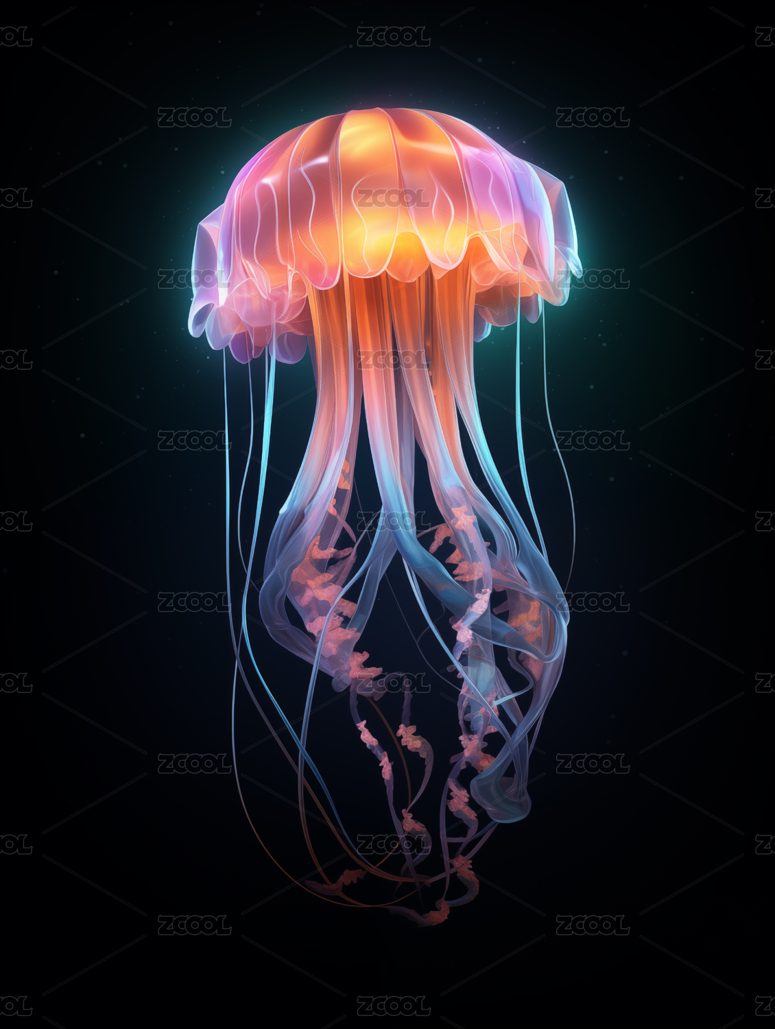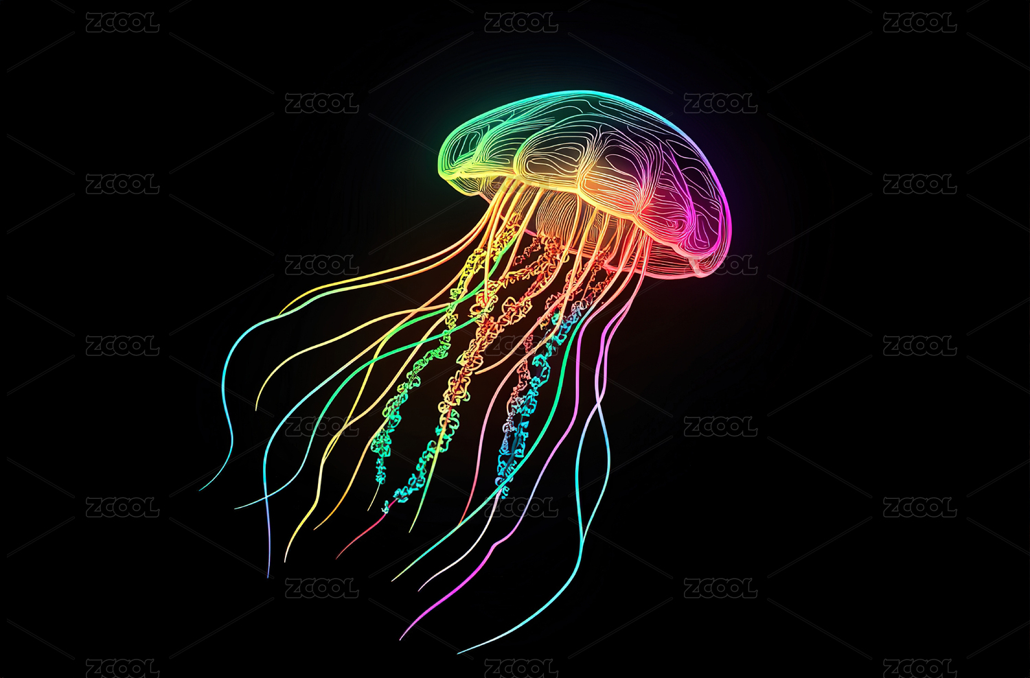 抽象概念的炫彩科技的海洋生物水母