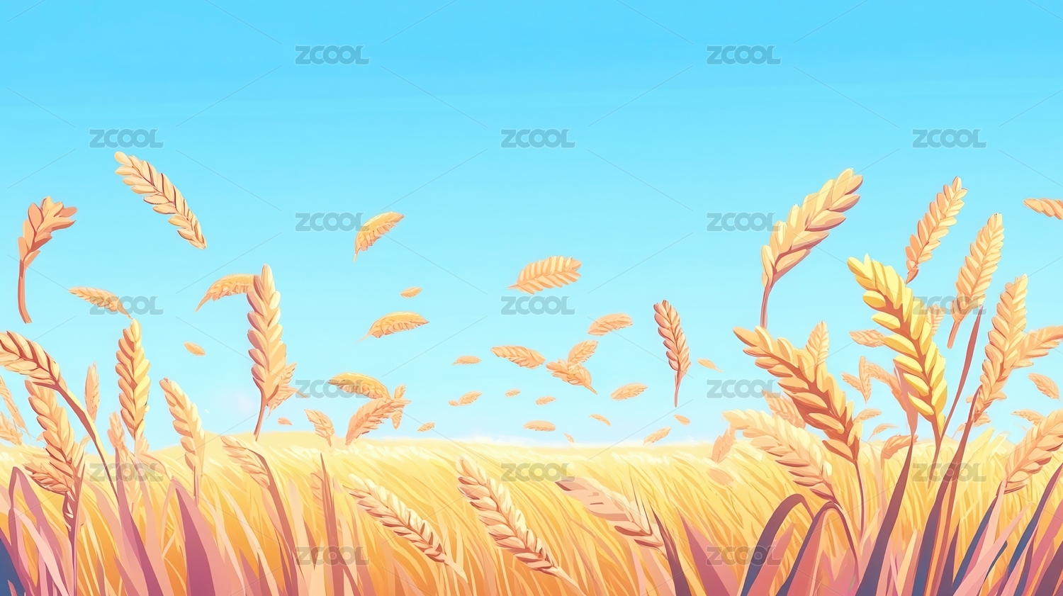 夏天金色麦田秋天节气小麦成熟秋收插画