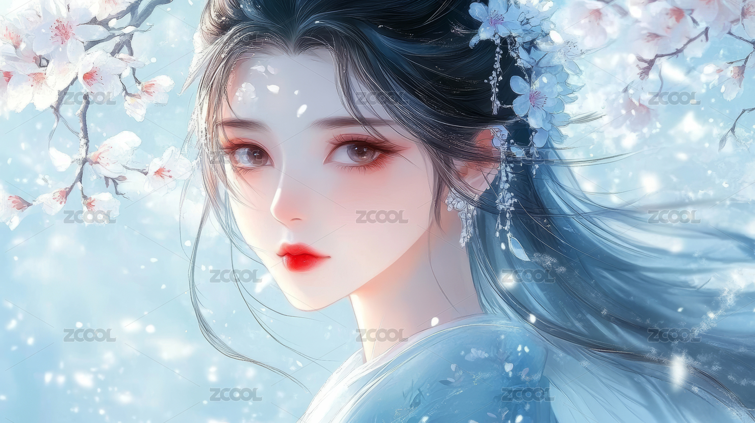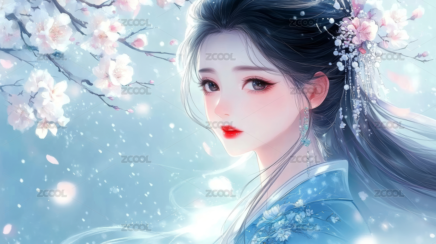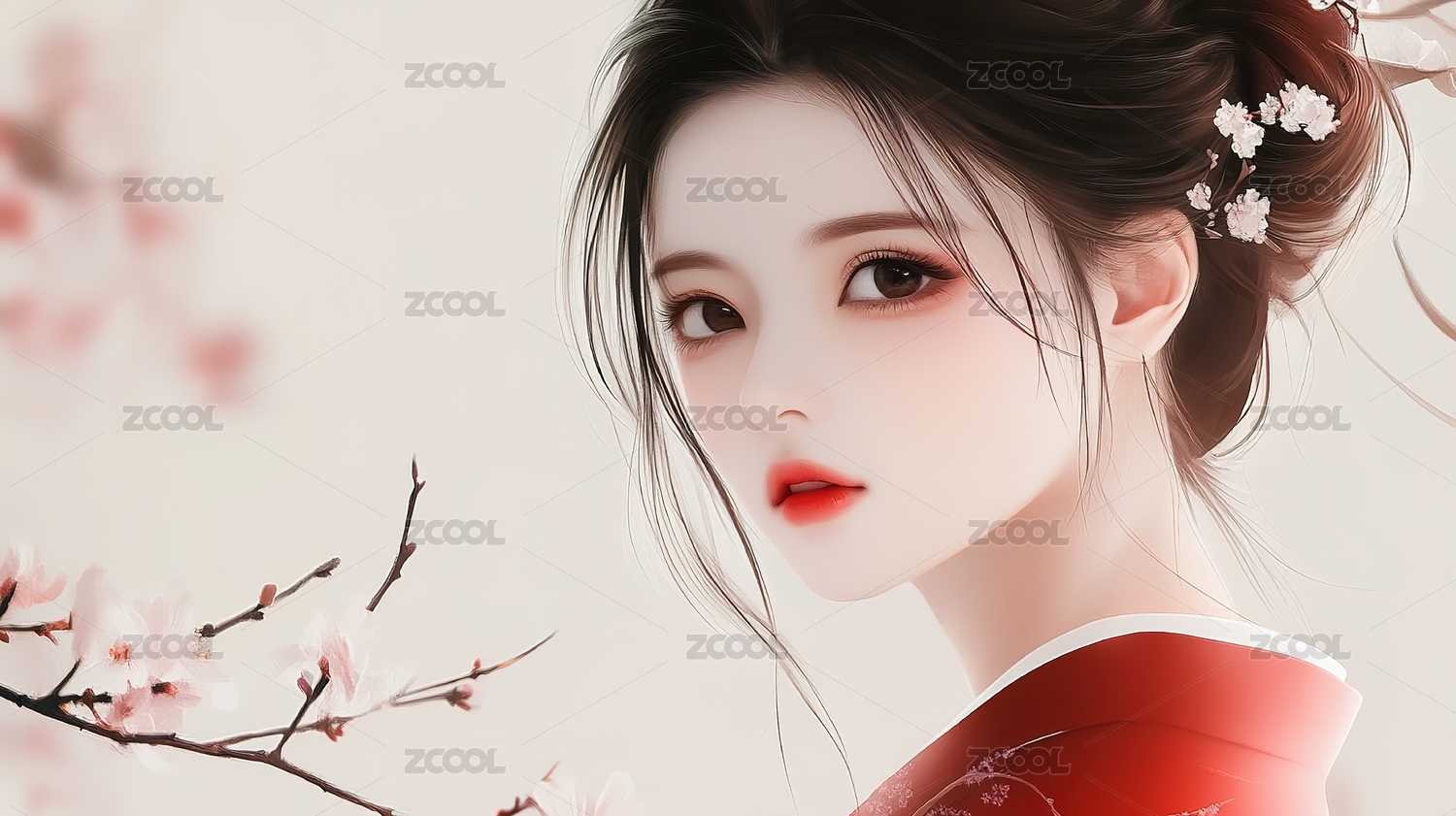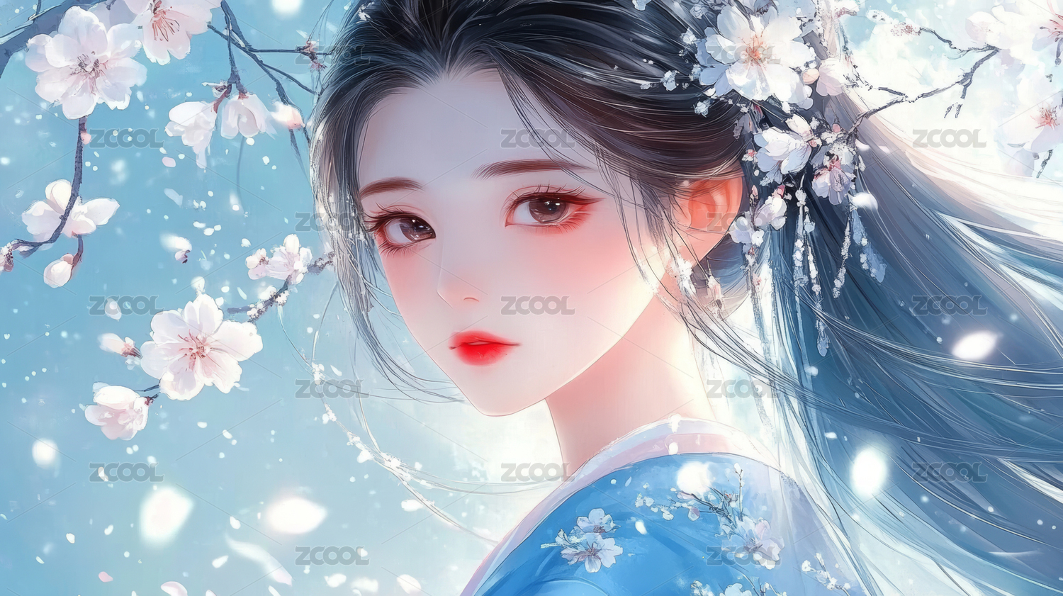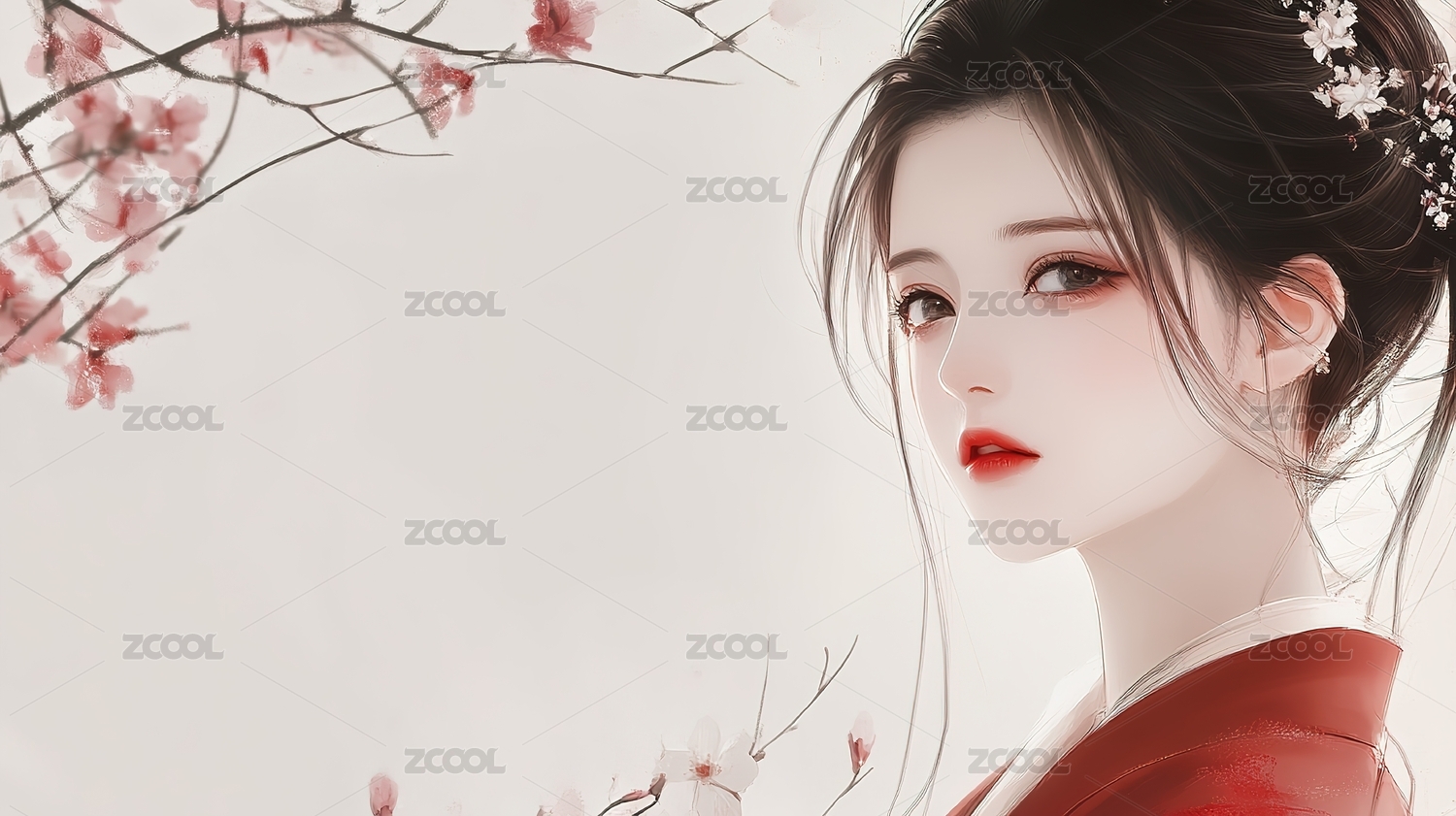 飞天,嫦娥,清新,插画,女生,月亮,花,发髻,满月