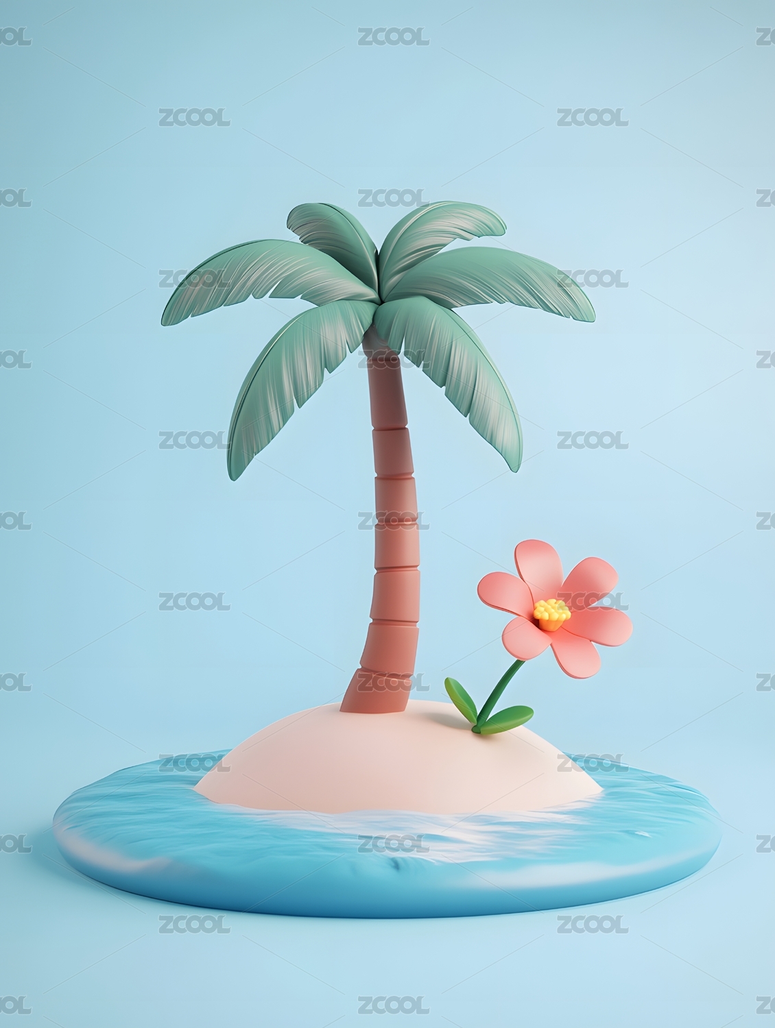3D渲染椰子树夏季热带海岛夏天节气插图