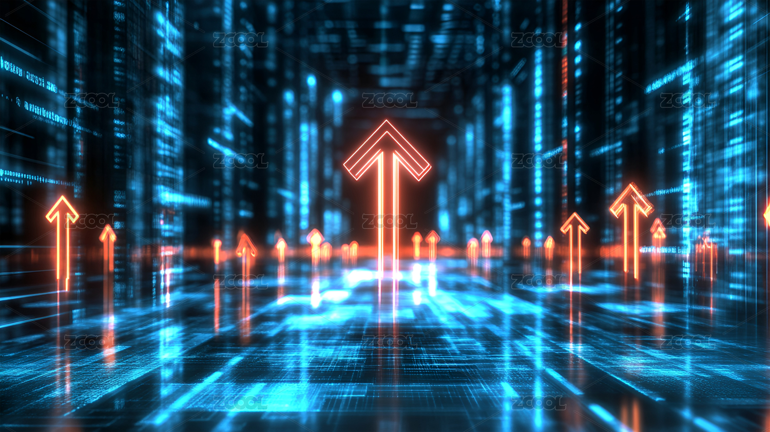 科技感上升箭头数据流背景
