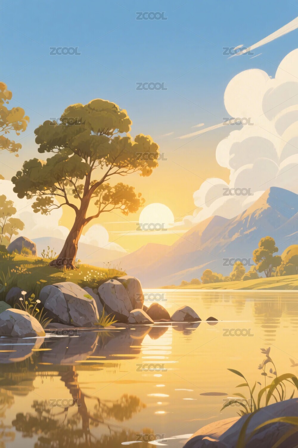 立秋,秋天,银杏树,金秋,秋日美景,秋日插画,金色背景,河流,大自然,美景