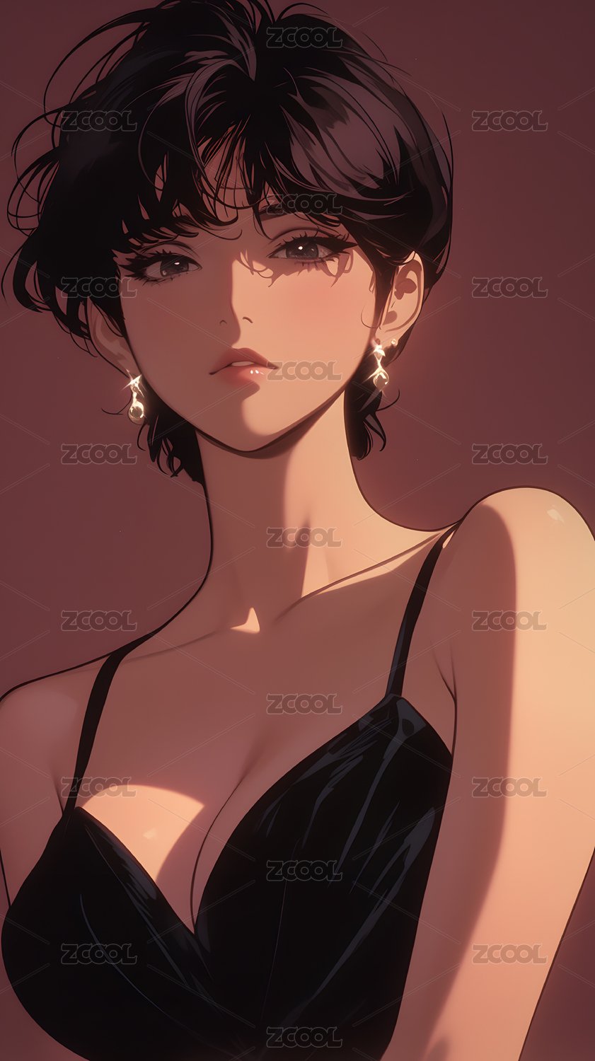 复古日漫90年代优雅美丽气质女人棕短卷发