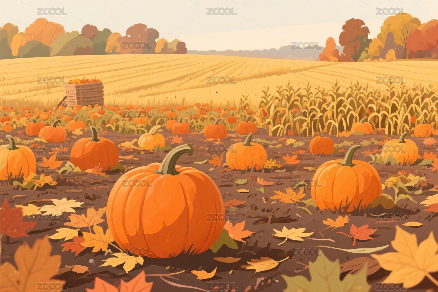 菜园里南瓜成熟秋天丰收季节植物蔬菜插画