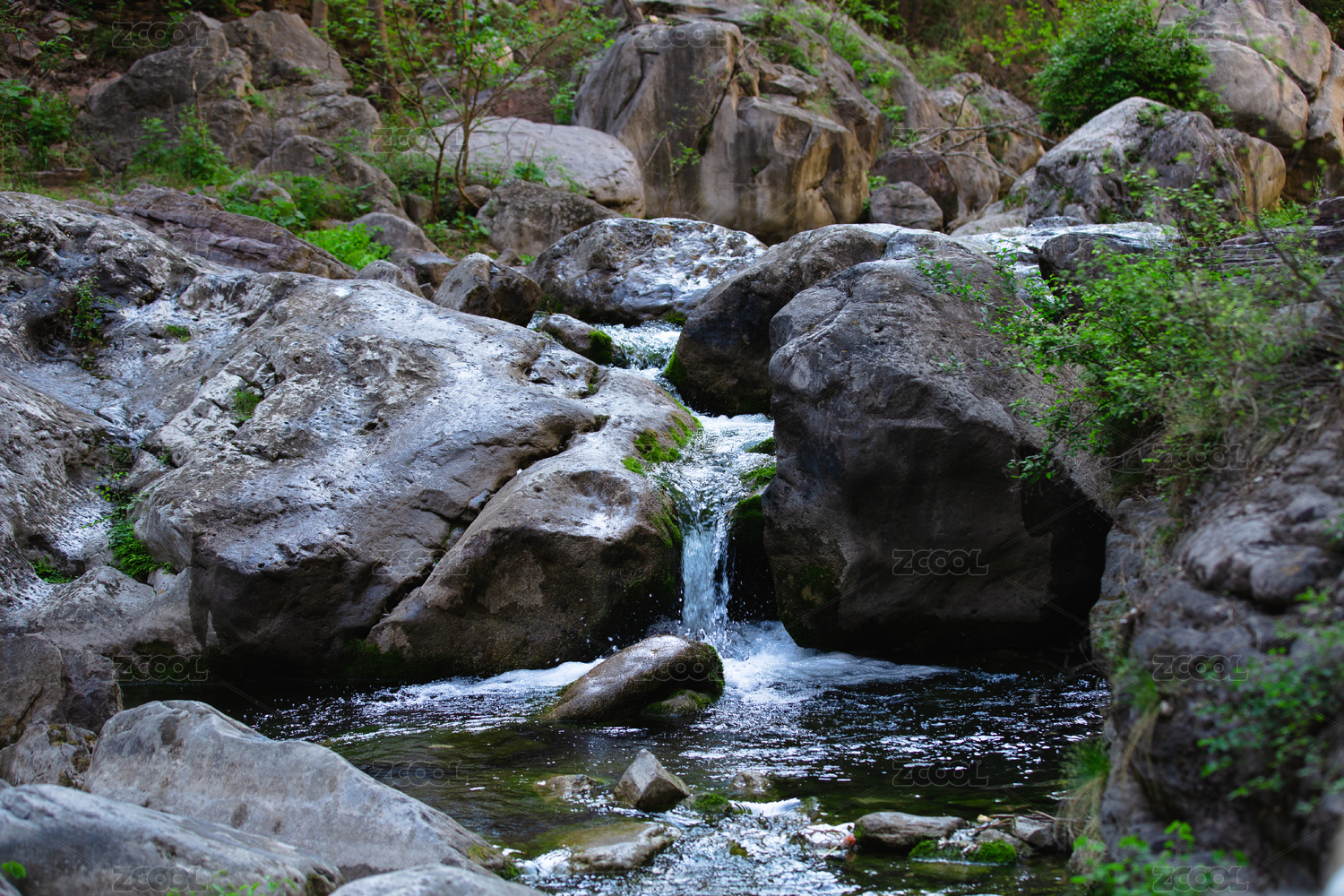 岩石间溪流的自然景观