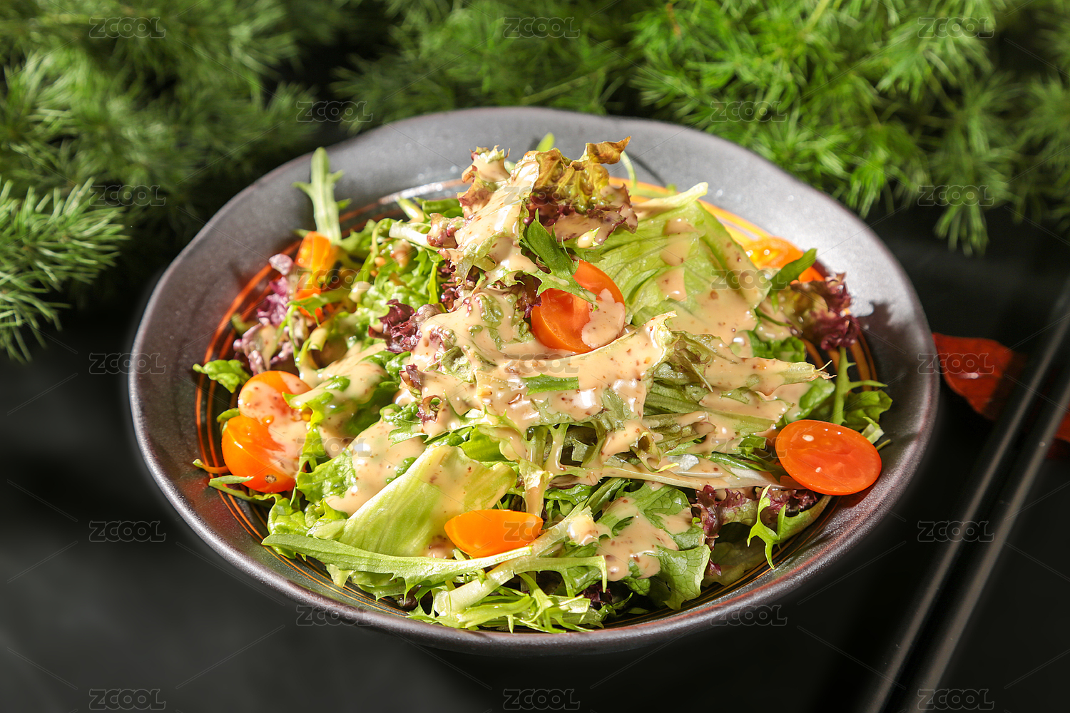 一盘凉拌生菜番茄芒果无花果蔬菜沙拉