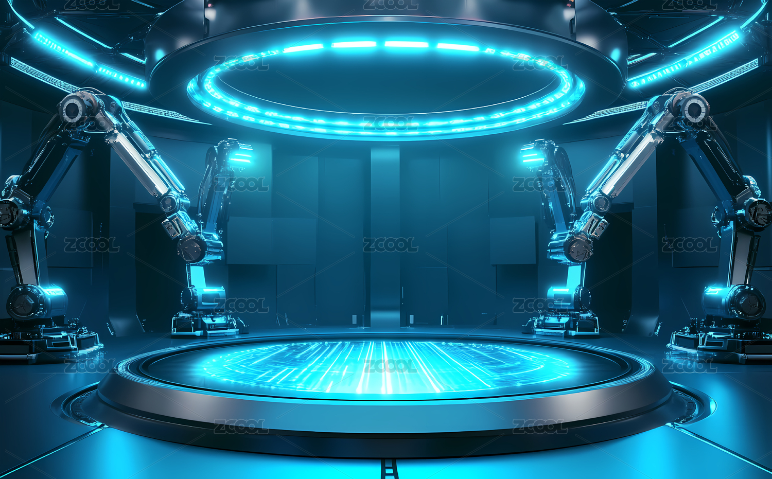 未来科技机械手臂与发光平台