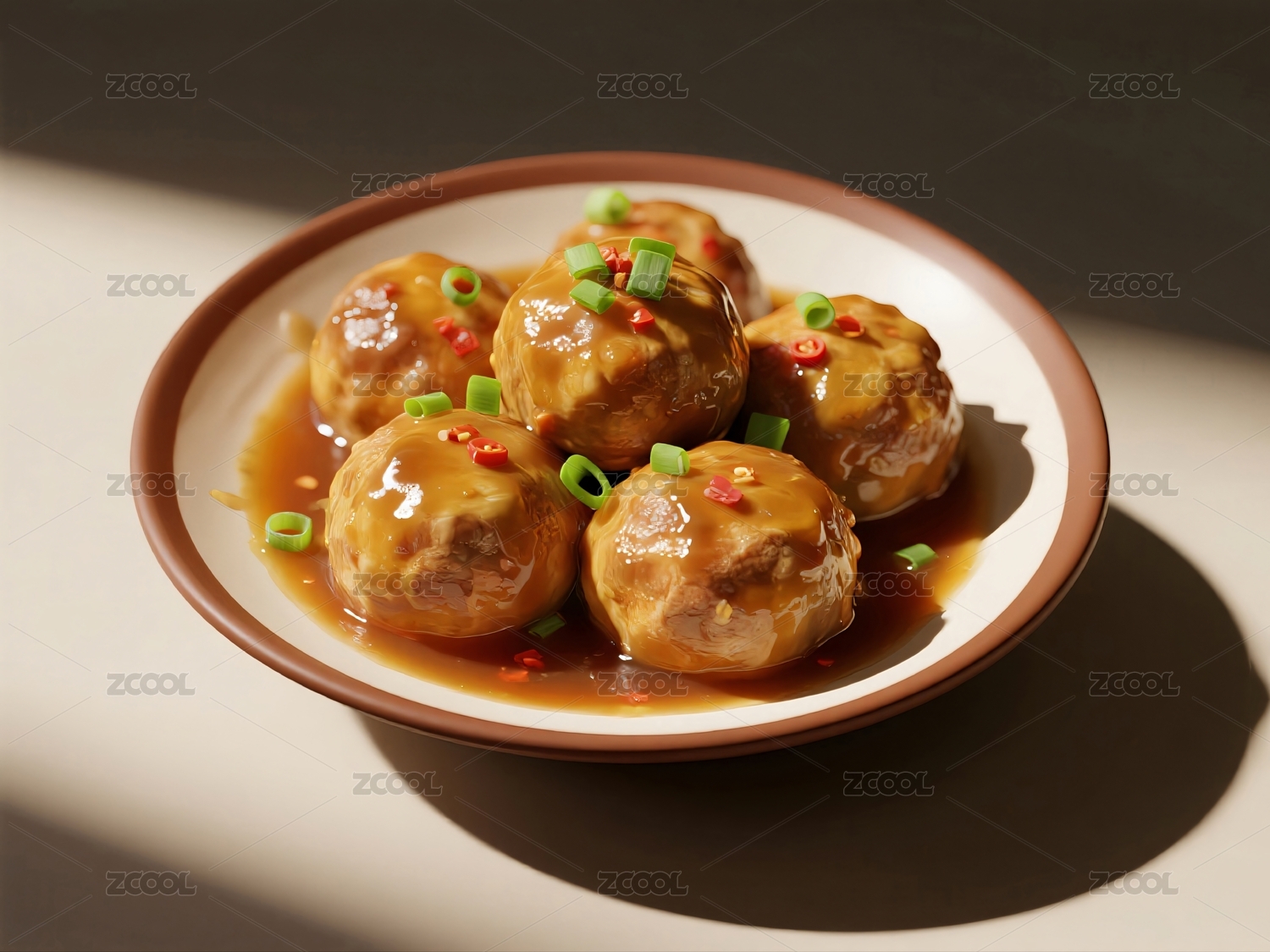 酱汁肉丸摆放在盘子里面