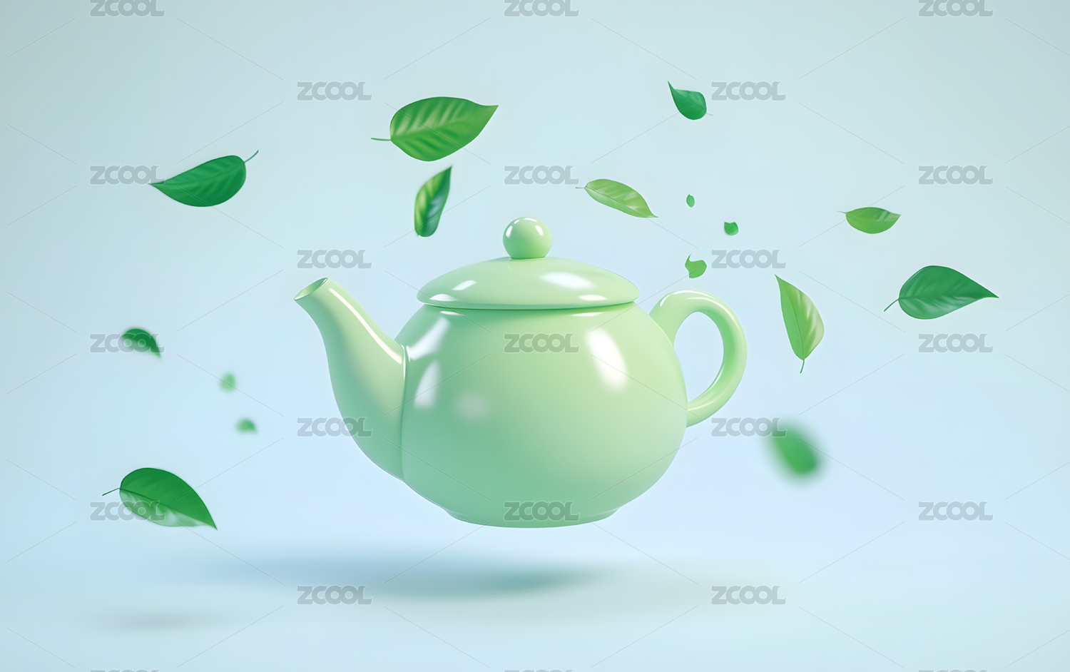 3D,插画,水壶,健康,绿茶,中国文化,中国风,传统文化,古典,古风