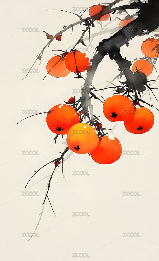 柿子 水墨画 节气 霜降