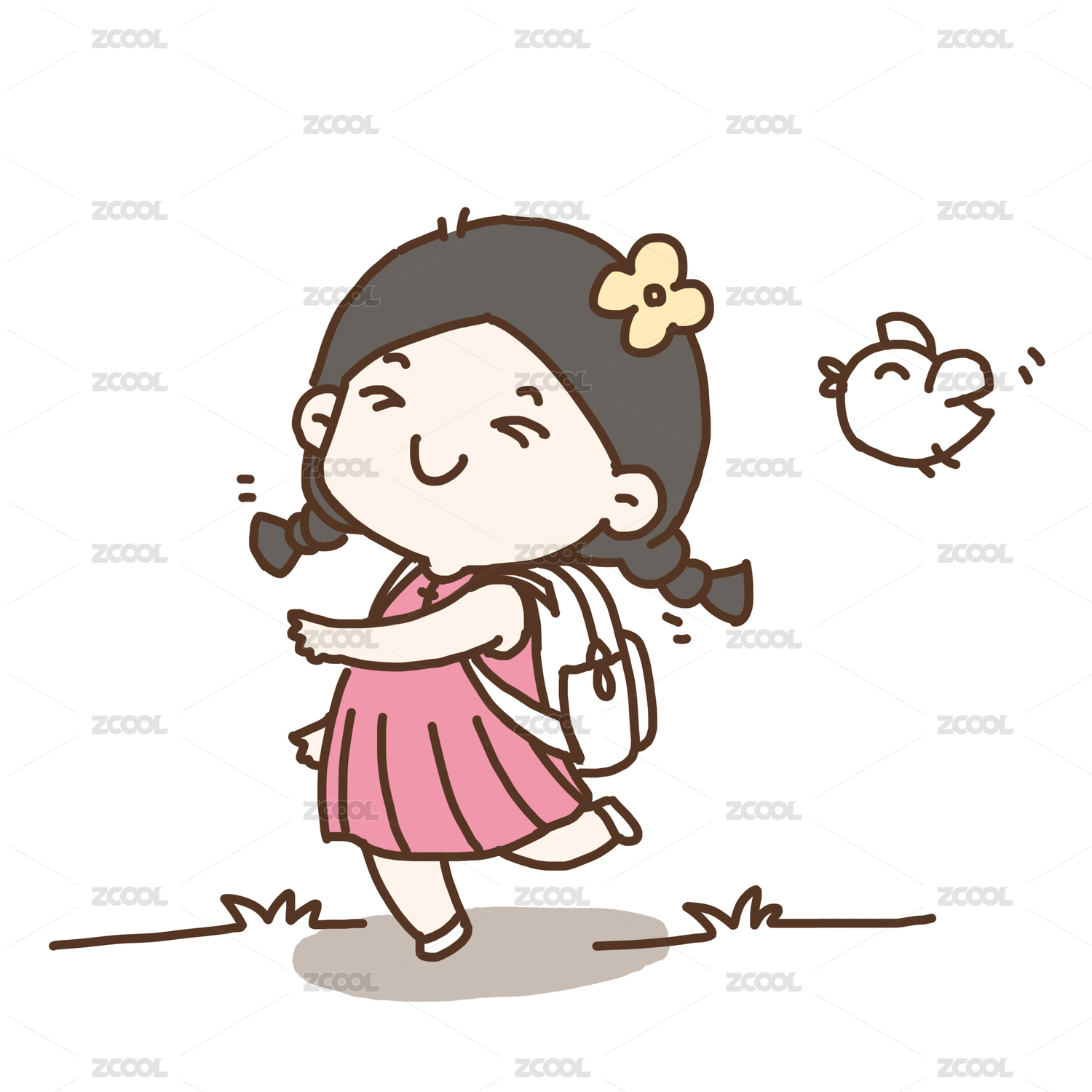 小女孩背着书包去上学
